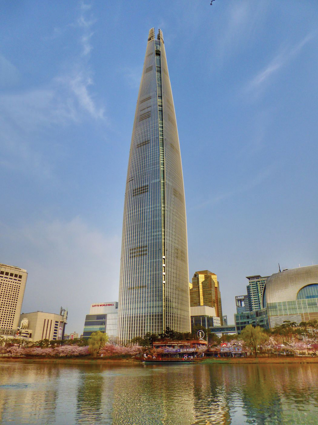 Korėjos „Lotte World Tower“ yra 123 aukštų dangoraižis Seule, Pietų Korėjoje, ir šiuo metu yra aukščiausias pastatas šalyje. Žibinto formos stogo konstrukcija pagaminta iš plieninių segmentų, kurių kiekvienas yra 12 m ir sveria 20 tonų. Jie pagaminti iš sulenktų metalinių plokščių, kurių storis 6 centimetrai. Pati konstrukcija yra 120 m aukščio ir dengia 107–123 aukštus. Stogo statybai buvo naudojamos maždaug 3 tūkst. t plieninių detalių, kurias sujungė aukštos kvalifikacijos suvirinimo technikai. Stogo konstrukcija suprojektuota taip, kad išlaikytų savo svorį be sutvirtinančių stulpų, atlaiko iki 9 balų žemės drebėjimus pagal Richteri