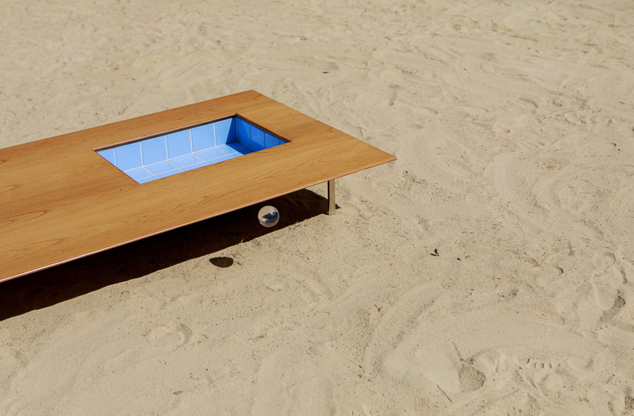 Brazilijos dizaino studija „Alva“ pristatė akiai neįprastus stalus su išpjovomis, kurios padengtos perdirbtomis mėlynomis plytelėmis ir primena baseino dugną. Kolekcija pavadinta „Piscinas“ apima penkis skirtingus kėdžių ir stalų dizainus.
