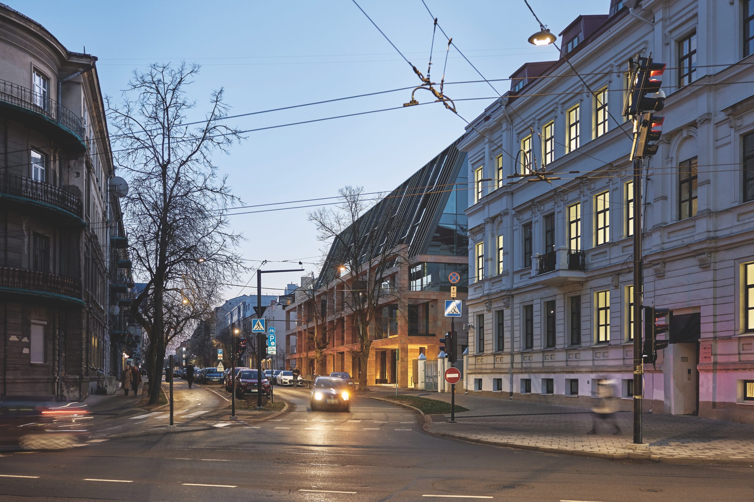 Vidiniai fasadai – taip pat išskirtinis sprendinys. Palyginti plonos akmens plokštelės buvo ne klijuojamos, o tvirtinamos mechaniniu būdu. Dėl to buvo pagaminta speciali ventiliuojamo fasado sistema. „Tokių ambicingų geometrinių charakteristikų projektui reikėjo ir investicijų, ir visų specialistų komandinio darbo“, – pabrėžia E. Neniškis.