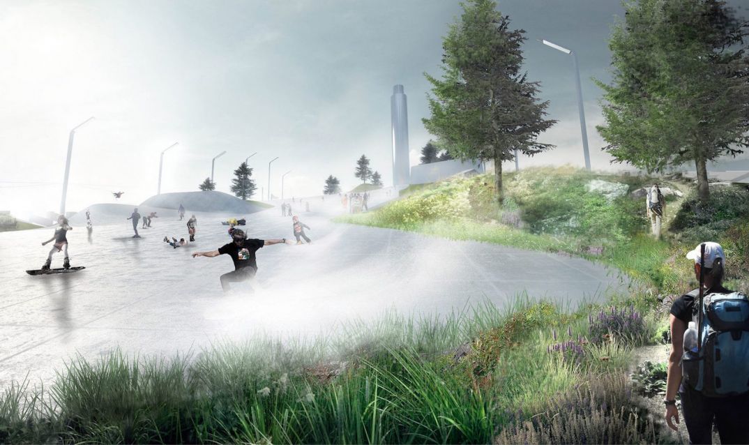 Šią savaitę paskelbta apie architektų studijos „Bjarke ingels group“ (BIG) sukurtos 600 metrų ilgio slidinėjimo trasos atidarymą. Ant atliekų perdirbimo ir elektros energijos gamybos gamyklos stogo įrengtas ir didelis parkas, kuriame yra specialios vietos pėstiesiems, laipiojimo sienos, sodas.