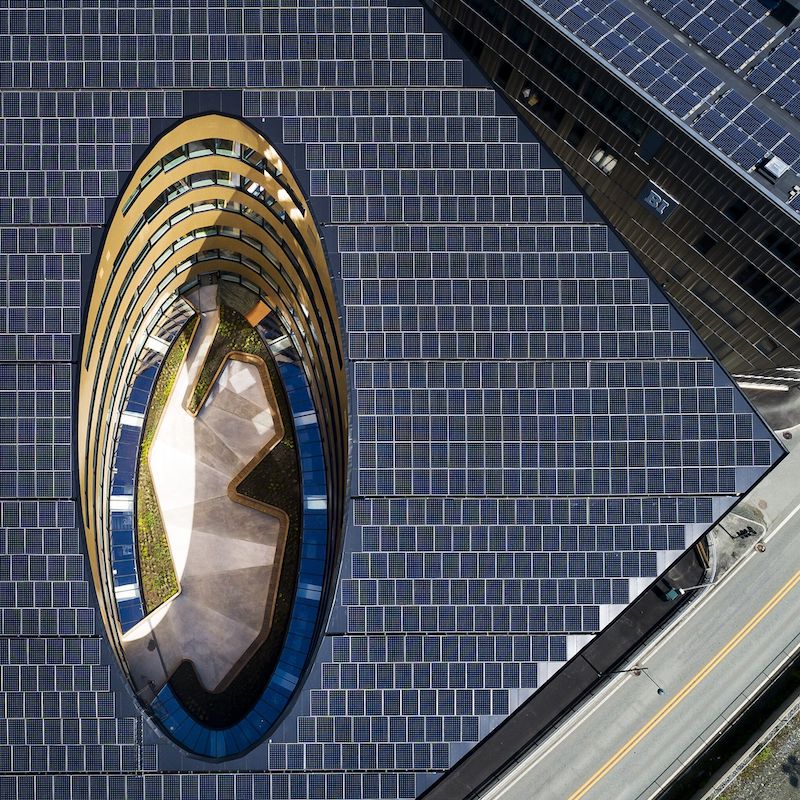 Biurų pastatas turi penkiakampį stogą, kuris nuo vieno krašto iki kito padengtas saulės kolektoriais. Statinys orientuotas taip, kad elementai gamintų maksimalų kiekį elektros energijos. Tai buvo nemenkas iššūkis, prisimenant, kad jis stovi šiauriniame mieste. Beje, šis biurų pastatas šiuo metu apskritai yra labiausiai į šiaurę nutolęs energiją gaminantis statinys. Apskaičiuota, kad jis pagamins dvigubai daugiau energijos nei suvartos, ir į tai taip pat įskaičiuota energija, kurios reikėjo pastato statybai bei kurios prireiks jam nugriauti.