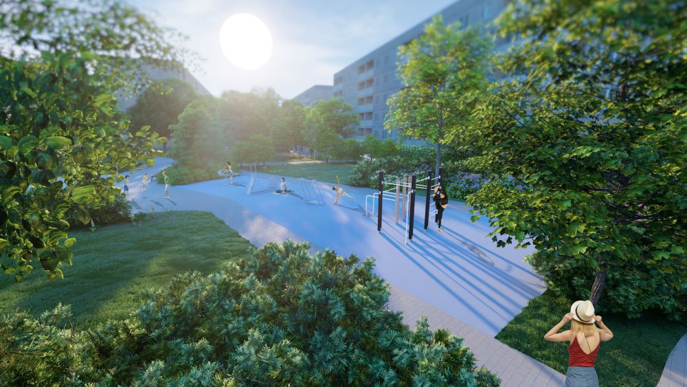 Atnaujinamoje viešojoje erdvėje planuojama įrengti naujas poilsio erdves, automobilių stovėjimo aikšteles, sutvarkyti inžinerinius tinklus, pėsčiųjų takus, apželdinti aplinką, pastatyti naujus mažosios architektūros elementus. Čia bus įrengti modernūs lauko treniruokliai, vaikų žaidimų aikštelė, ramaus poilsio zonos. Šių dalykų pageidavo ir rajono bendruomenė, aktyviai dalyvavusi susitikimuose su projektuotojais.