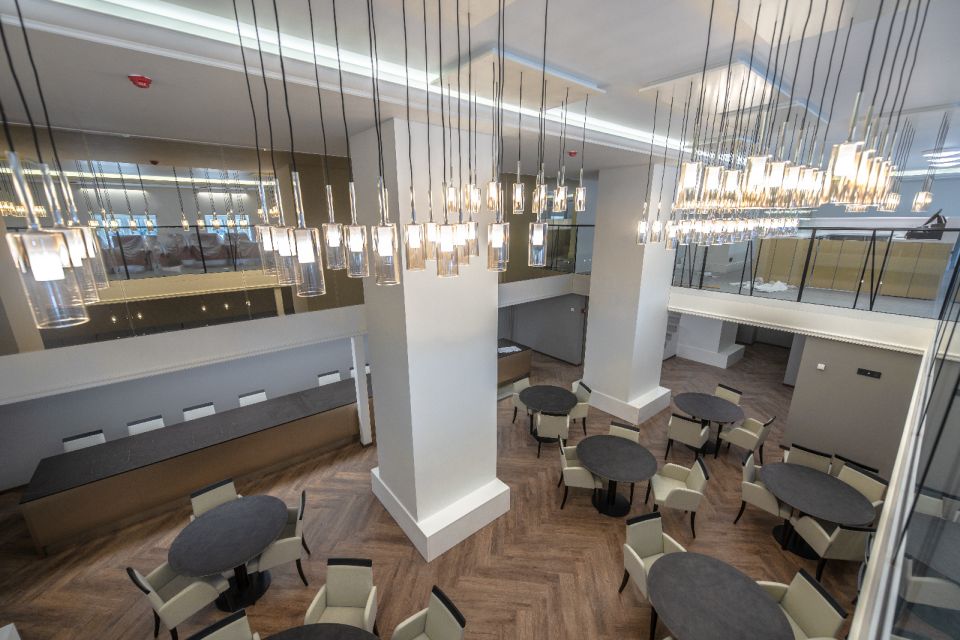 Taip pat puikiai eksploatacijai bei švarai palaikyti objekte panaudota UAB „Interjero linija“ antros zonos įėjimo kiliminių plytelių sistema „Amtico Entryway“, puikiai sulaikanti drėgmę bei abrazyvą ir neleidžianti purvui plisti į tolesnes patalpas.