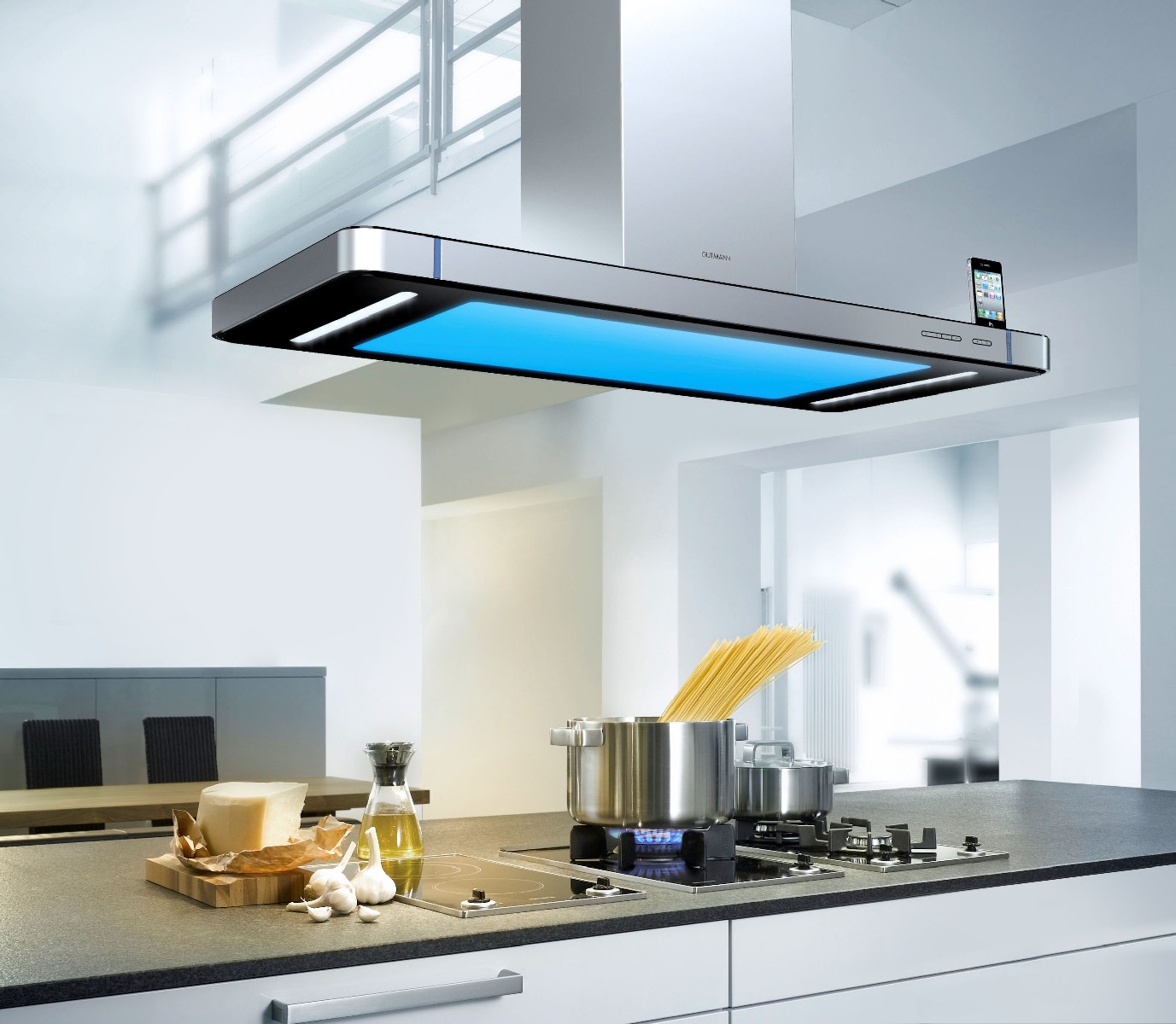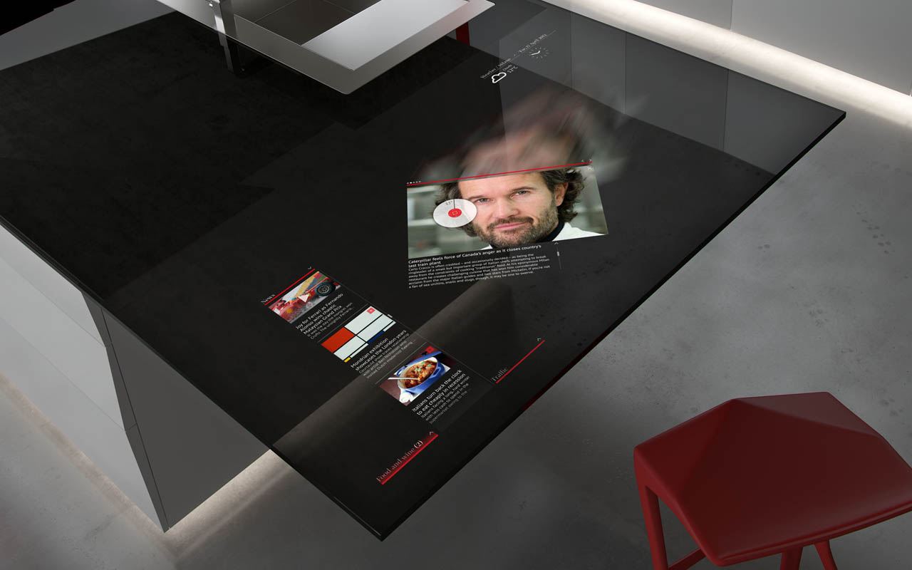 Ateities virtuvėje svarbų vaidmenį atliks virš stalo sumontuota technika: kameros, kurios stebės tai, kas padėta ant paviršiaus, ir išmanusis apšvietimas, kuris projektuos įvairių prietaisų (pavyzdžiui, svarstyklių ar kaitlentės) grafinį vaizdą. Svarbiausia, kad šie grafiškai atvaizduoti prietaisai iš tiesų veiks. Ant virtualios kaitlentės, kuri pati gebės nusistatyti optimalią temperatūrą, galėsite šildyti ar gaminti maistą, o virtualios svarstyklės padės pasverti produktus, kad jų į gaminamą patiekalą įdėtumėte tiksliai tiek, kiek nurodyta recepte.