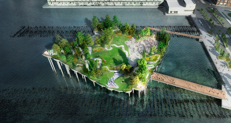 Kaip pasakoja architektai, ši prieplauka atliks ne tik savo tiesioginę funkciją, tačiau bus skirta ir apsaugai nuo audrų ir dažnėjančių potvynių, bei taps 800 vietų talpinančiu amfiteatru su dviem dokus primenančiais keliais, jungiančiais prieplauką su Niujorko miesto kranto linija.