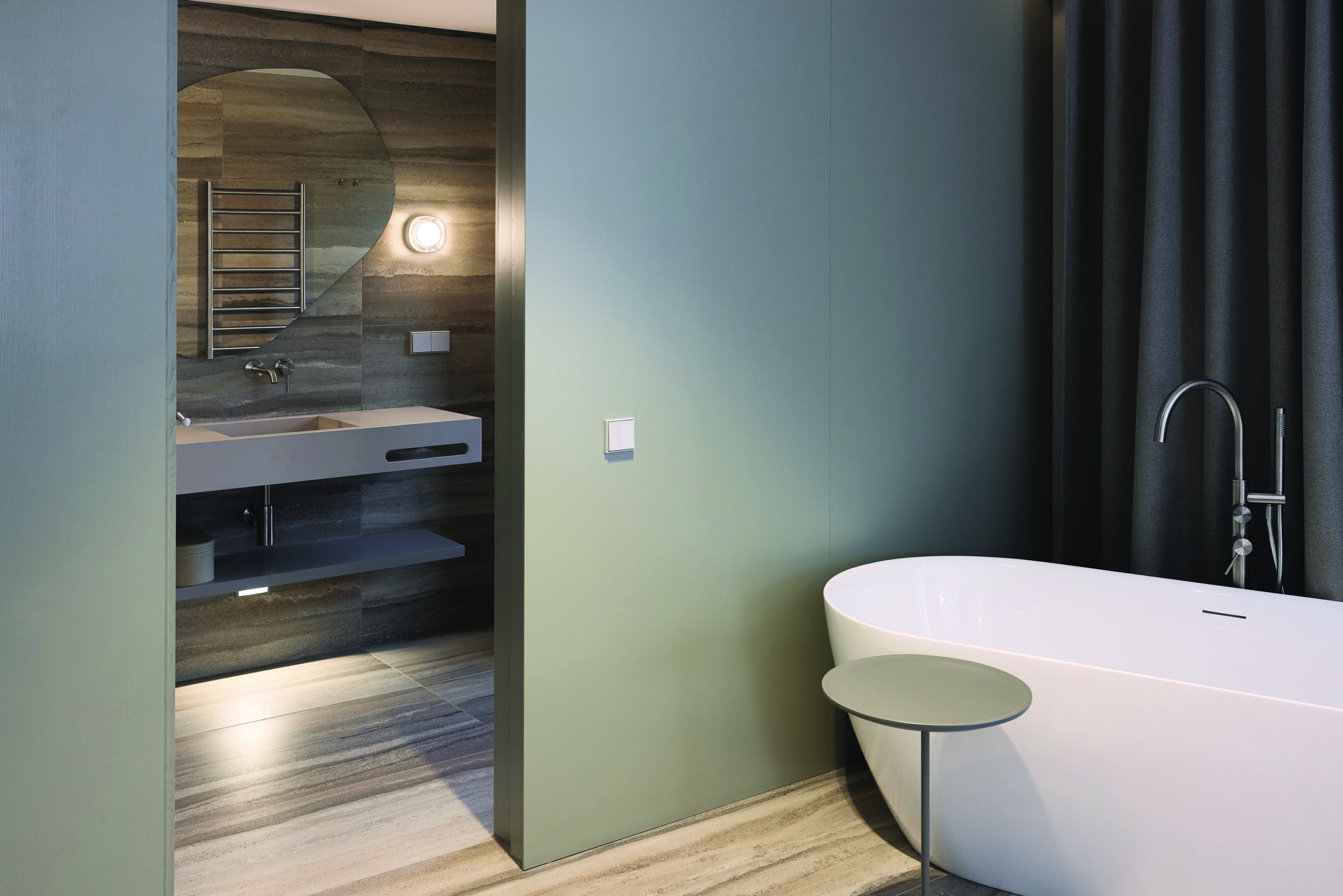 „Projektuojant viešbučio sanitarines erdves, užsakovo prioritetas buvo ne trumpalaikiai dizaino sprendimai, o ilgalaikė vertė – techninis patikimumas, atsparumas intensyviam eksploatavimui ir rami, laikui nepavaldi estetika“, – svarbiausius vonios poreikius lėto poilsio rezidencijoje vardija Stasys Jodauga, prekių ženklą „My-bath“ valdančios įmonės „Trulita“ vadovas. Rezidencijai pasirinkti efektyvūs ir ilgaamžiai aiškaus, neperkrauto dizaino gaminiai.