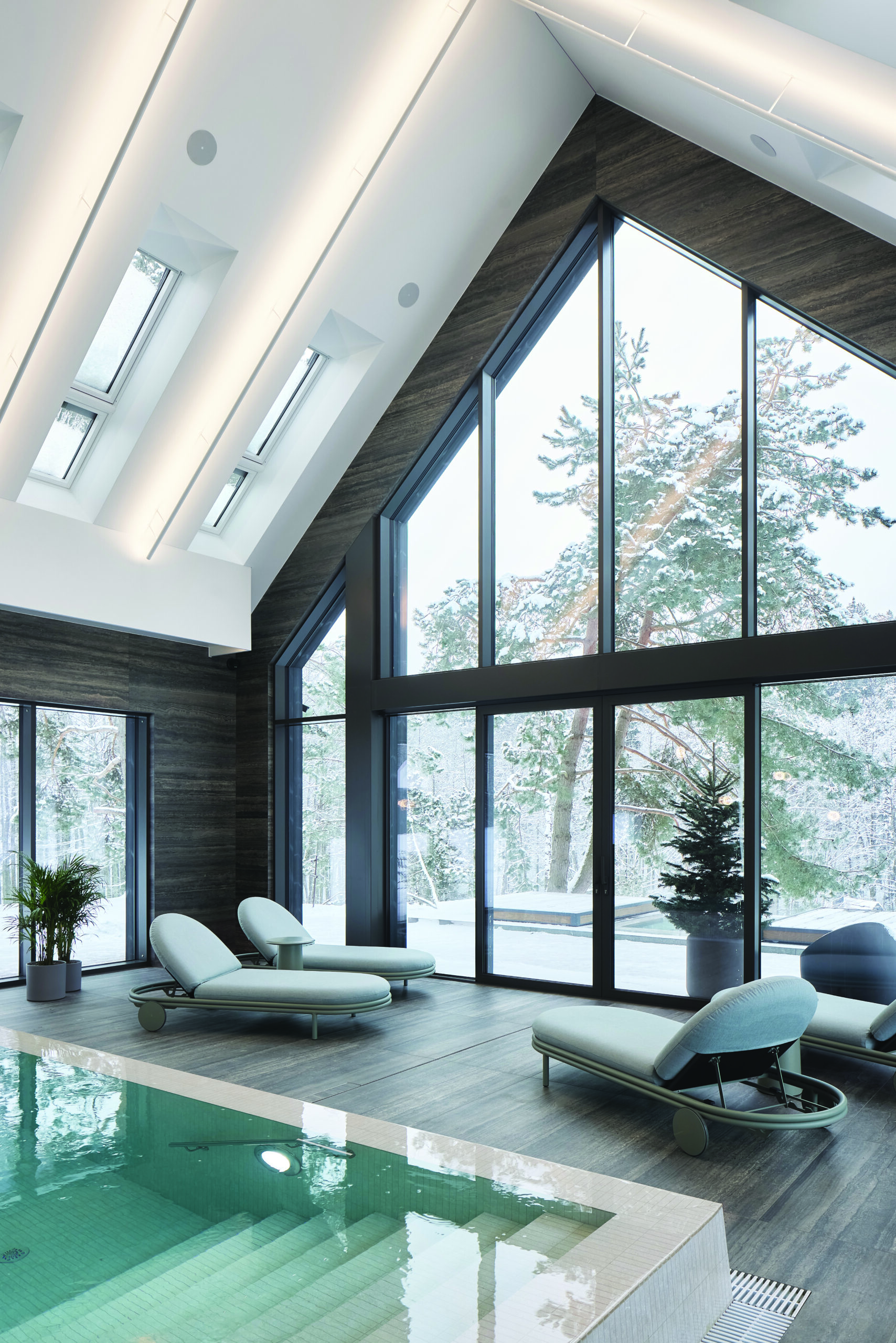 „Vidaus lounge tipo baseine rezidencijos svečiai galės mėgautis įvairiais vandens ir oro masažais. Dar daugiau išskirtinių potyrių suteiks netipinis lauko sprendinys – Lietuvos klimato sąlygomis ištisus metus veikianti sūkurinė vonia, kurios dangtis – automatiškai valdoma terasa. Svečiai čia galės mėgautis ramybe ir ežero panorama tiek būdami šiltame vandenyje, tiek patogiai įsitaisę krėsluose ant vonios automatiškai užstumtoje terasoje“, – sako V. Kveselaitis.