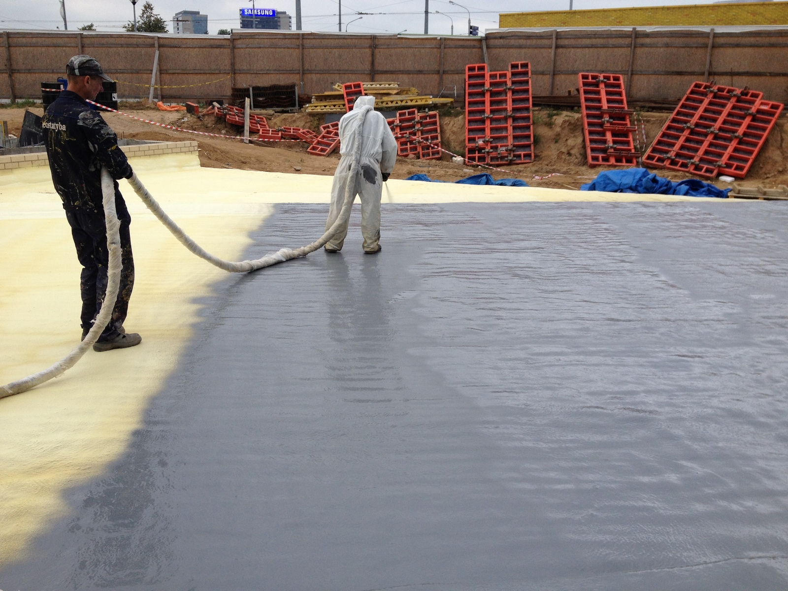 Gruntinį vandenį ne visada galima pažeminti, todėl kartais gelbėja žiema, kai didžioji dalis šaltinių užšąla. O štai blogo oro problemas padeda išspręsti tinkamai parinktos medžiagos, leidžiančios darbus atlikti ištisus metus. Deja, neretai užsakovai klaidinami, hidroizoliacijas lyginant pagal kainą, bet nesigilinant į medžiagos ilgalaikiškumą, darbų su ja paprastumą ir galimybę dirbti žiemą. O juk statant didelių tūrių pastatą bent vienas hidroizoliacijos etapas vyksta šaltuoju metų laiku. Taigi netinkamai parinkus medžiagas, dažnai tenka stabdyti darbus dėl atšalusių orų ar kritulių.