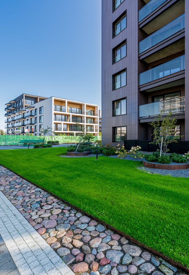 Naujųjų namų fasadus puoš projekto architekto Tomo Kriaučiūno parinktos šiuolaikinės kokybiškos apdailos medžiagos, o butuose bus sumontuoti aukšti langai su trijų stiklų paketais bei gyventojų patogumui įrengti stikliniai prancūziški balkonėliai.