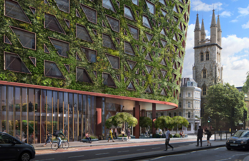 „Sheppard Robson“ paskelbė apie neįtikėtino projekto įgyvendinimą – didžiausią žalią sieną Europoje, kuri kiekvienais metais sugers aštuonias tonas oro taršos Londone, Didžiojoje Britanijoje.
