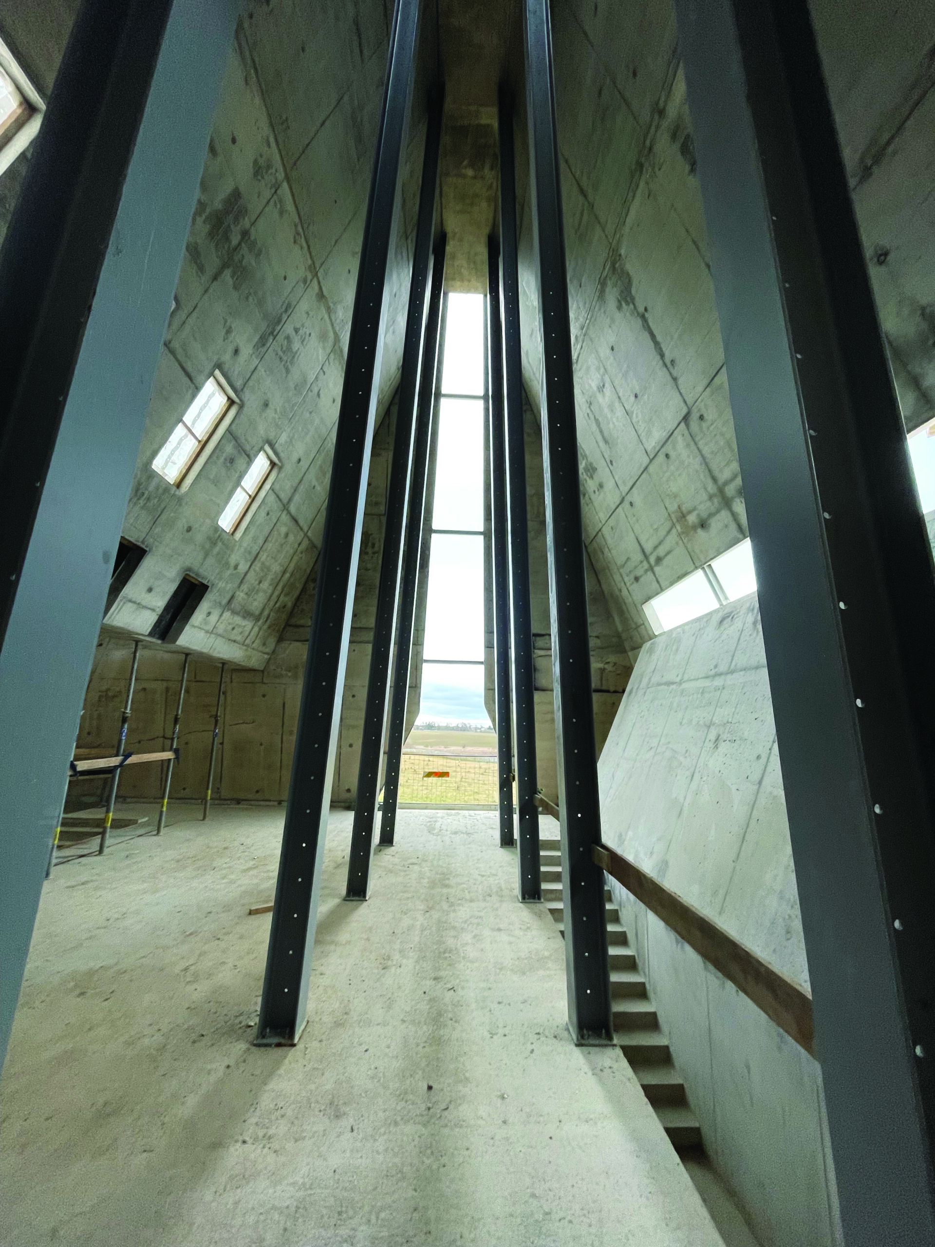„Klojinius jiems projektavome kaip sienoms, t. y. statėme iš abiejų pusių. Stogams tuo pat metu buvo naudojamos ir perdangos, ir sienų klojinių sistemos“, – neįprastą konstruktyvą aptaria pašnekovas.