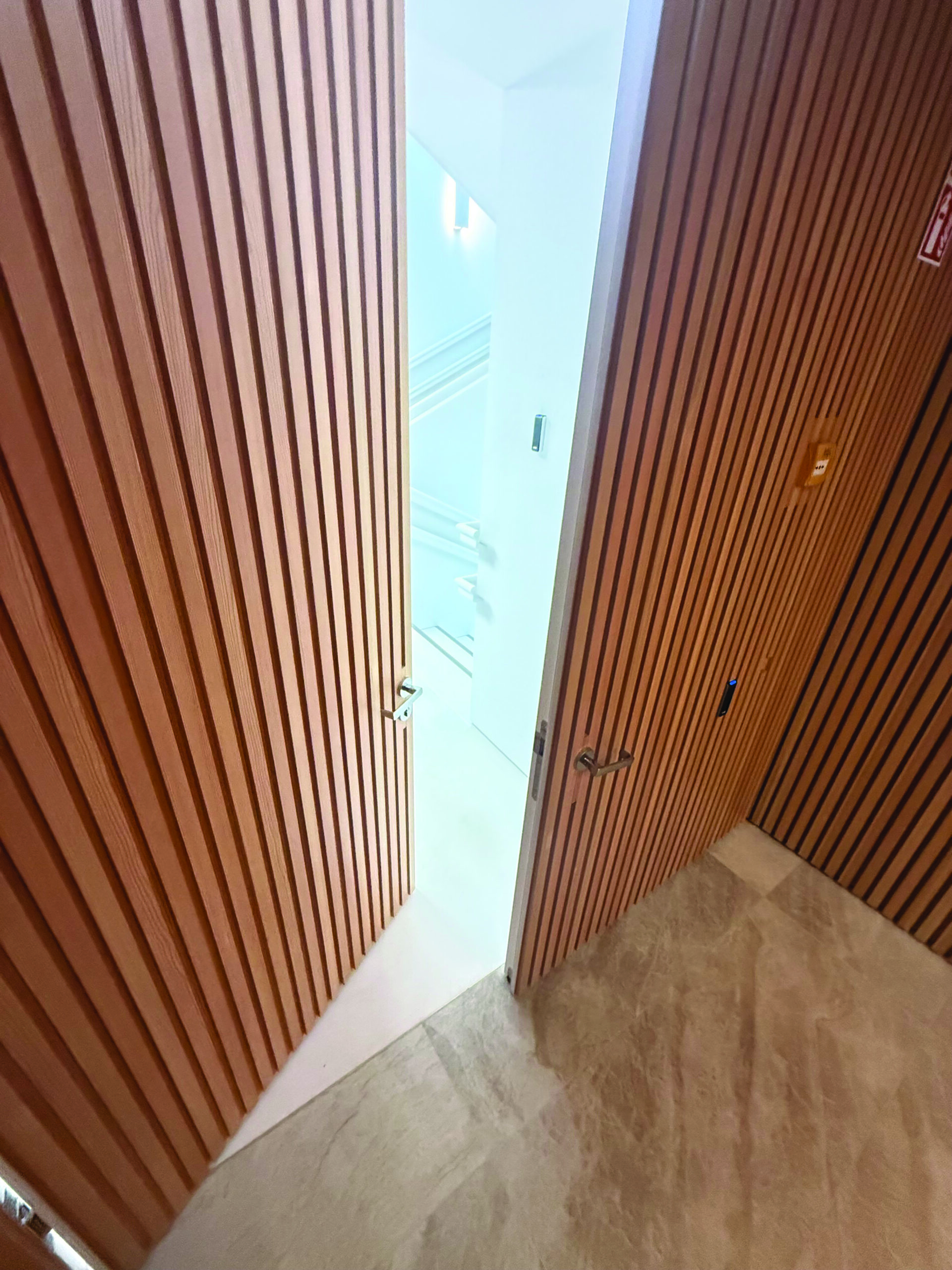 Objekte sumontuotos net 22 „Tortec STS“ gamykloje sukomplektuotos durys, dalis – su stakta per visą sieną, kitos – su blokine stakta. Durys yra įvairių parametrų: atsparios ugniai ir triukšmui (garso izoliacija Rw = 32 dB), su saugiai mechaniškai nuleidžiamų slenksčių sistemomis ir kt. Visose duryse sumontuoti paslėpti 3D vyriai ir durų pritraukikliai. Daugumoje durų integruotos išmaniosios elektroninės spynos.
