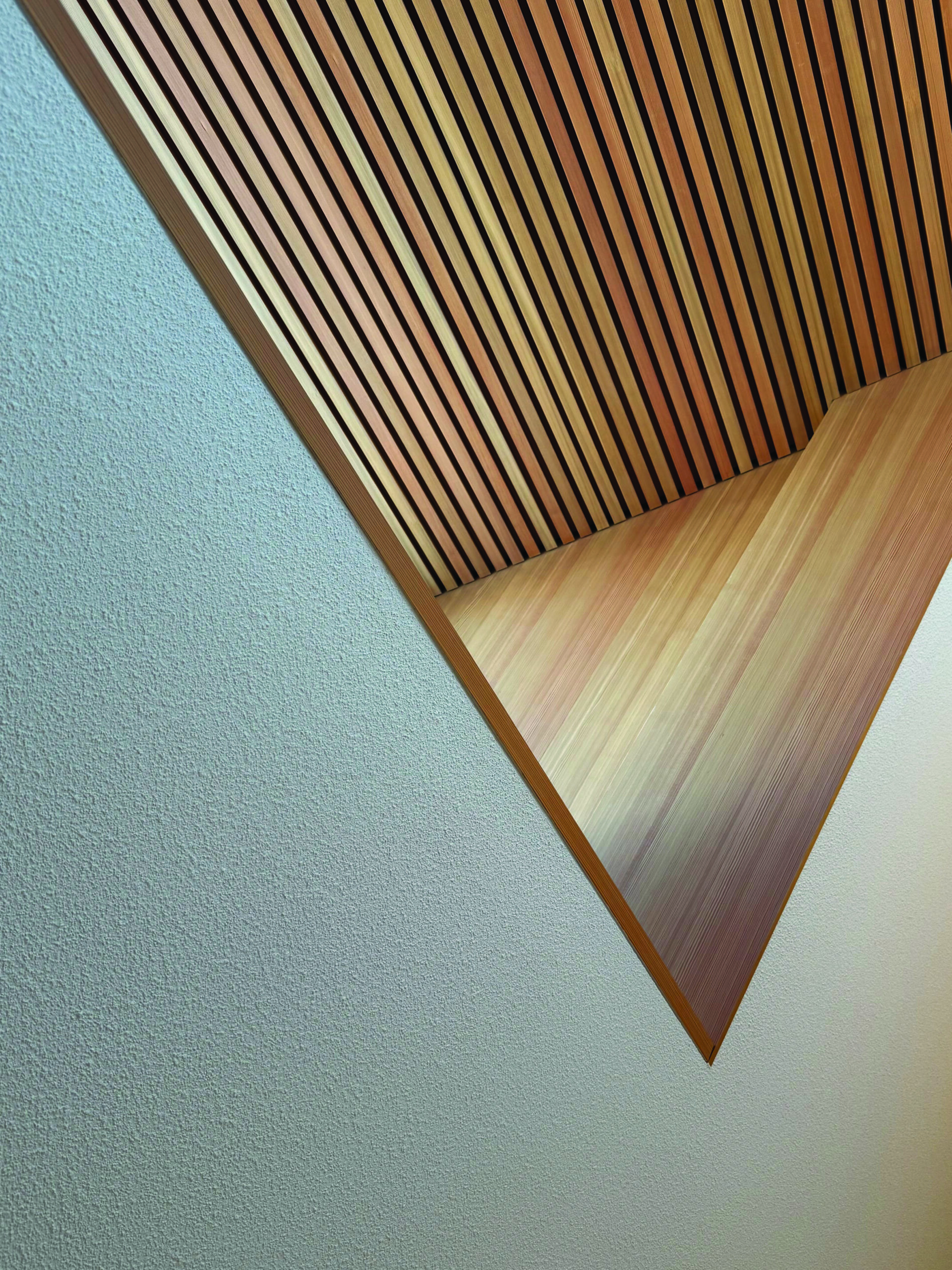„Kiekvienas sprendimas buvo unikalus – nuo spalvų iki mažiausių detalių“, – pabrėžia M. Ramonas ir priduria: danga tinka betono, medžio, gipso kartono ir kitiems paviršiams, o akustinis komfortas atitinka aukščiausius akustinius reikalavimus.