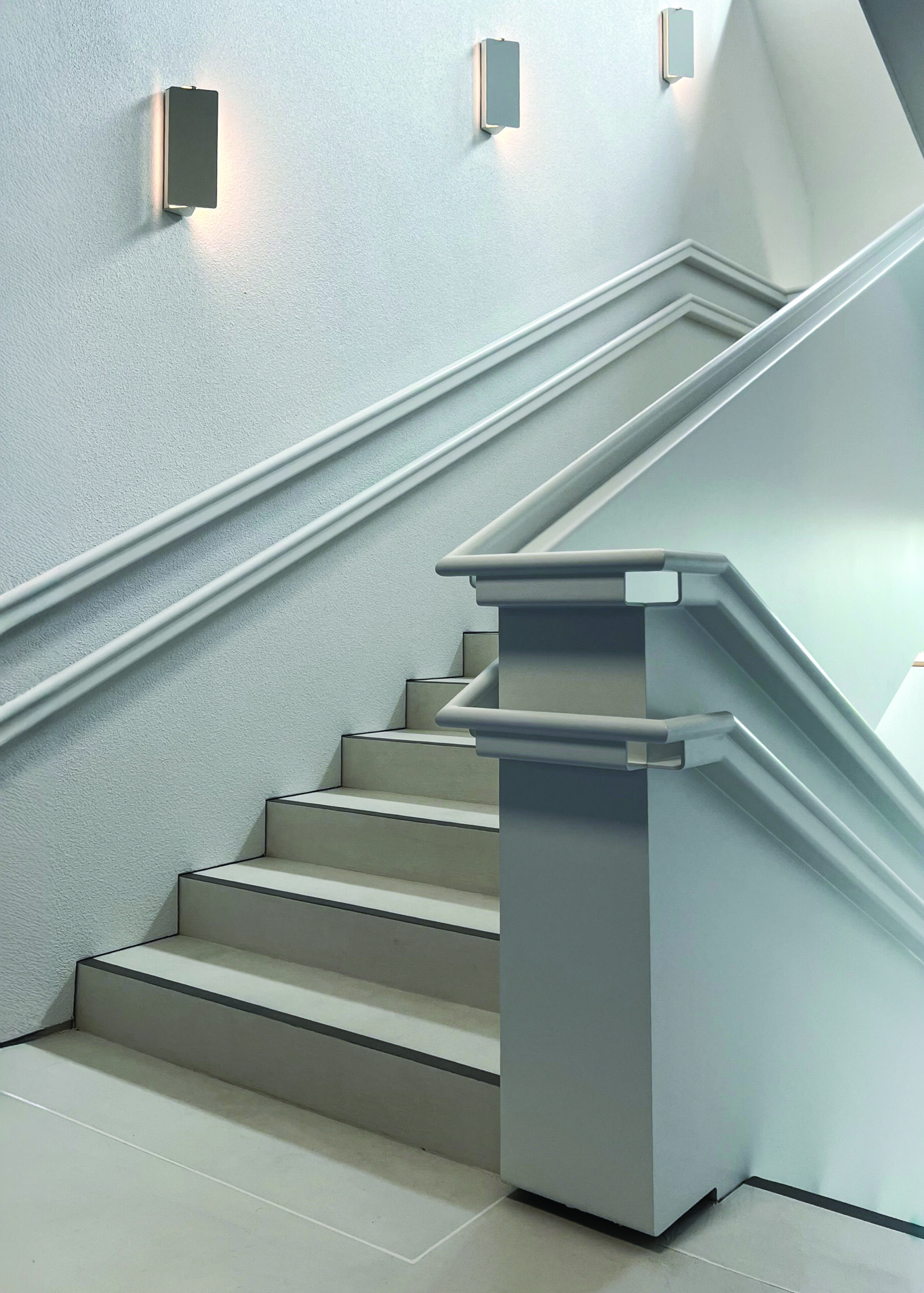 E. Dilbos teigimu, visame projekte naudotos tik natūralios ir labai aukštos kokybės medžiagos. Ne išimtis ir tos, kurios buvo skirtos laiptinėms. Joms pasirinktos aukščiausios kokybės cementinės dekoratyvinės medžiagos „Ardex PanDomo“ su tiek aplinkai, tiek žmogui draugiškais apsauginiais sluoksniais (lakas, vaškas).