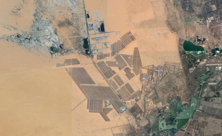 Šiuo metu didžiausias toks fotoelektroninis parkas yra 1547 megavatų Tenggerio dykumos saulės parkas, kuris veikia Ningxijoje. Pagal Pasaulio ekonomikos forumą antroje vietoje yra Indijoje esantis „Ladakh Sola“, kuris gamina 3000 megavatų.