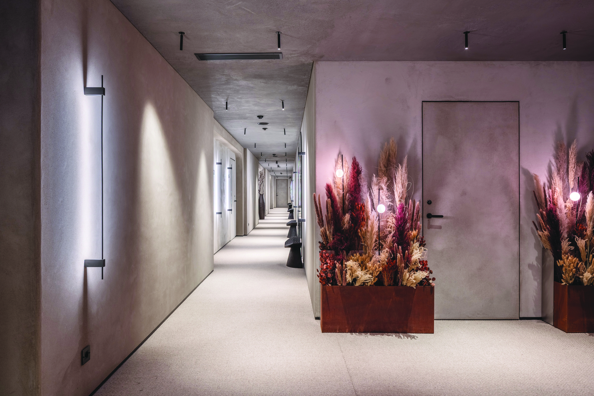 Viešbučio laukiamojo zonai pagaminta plastiškų formų lentynėlių su apšvietimu ir be jo, 3D plokštės staliukų. Prie viešbučio kambarių suprojektuoti ir pagaminti originalūs vazonai iš rūdinto ir nerūdijančiojo plieno derinio.
