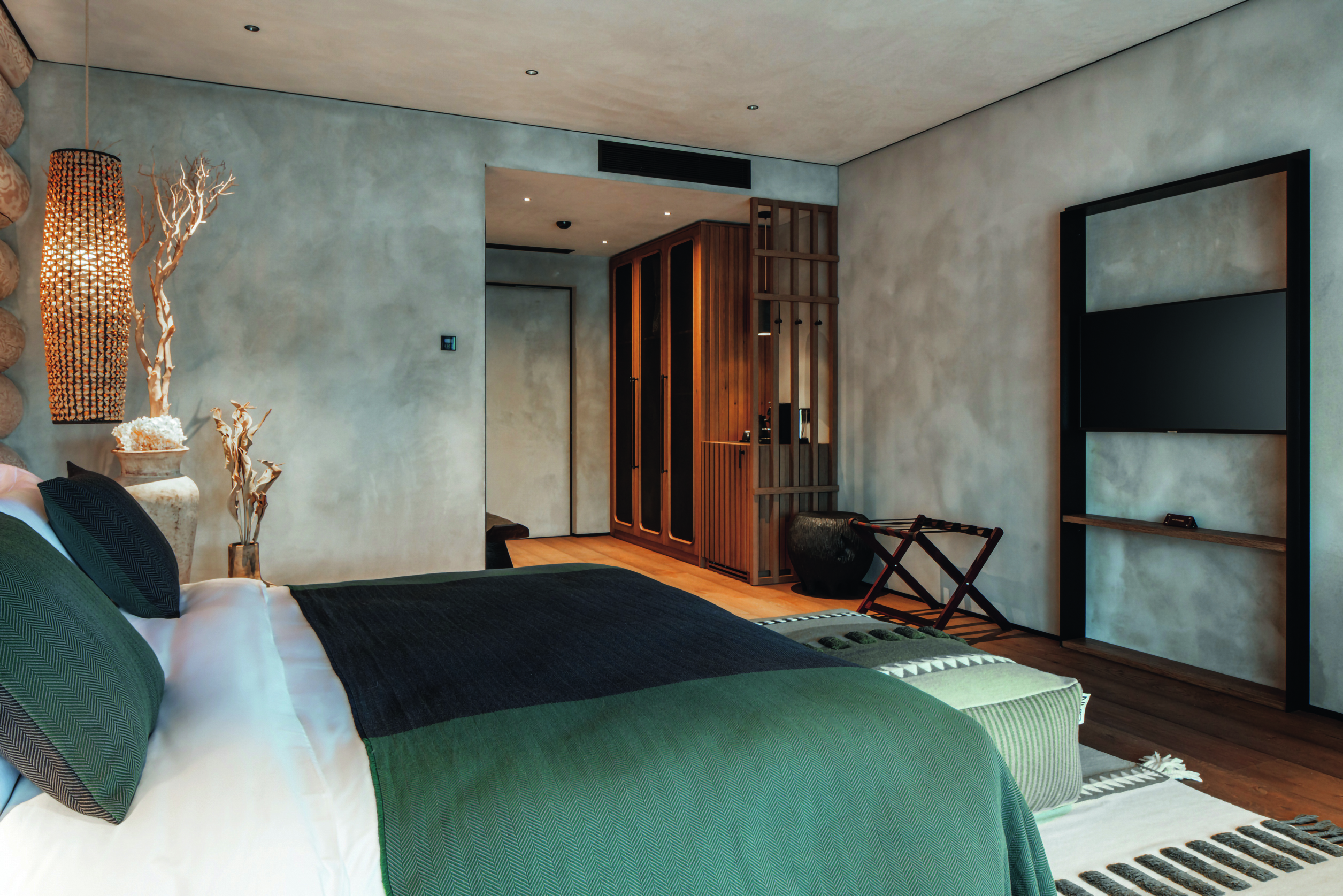 Visas komplekso dizainas – natūralių, santūrių spalvų, derančių prie aplinkinių miškų ir ežero. Pagrindinės medžiagos – kedro ir natūrali ąžuolo mediena, akmuo, molis ir linas. Svarbiausias tokio pasirinkimo motyvas – tekstūra, taktilinės savybės ir dėvėjimosi grožis.