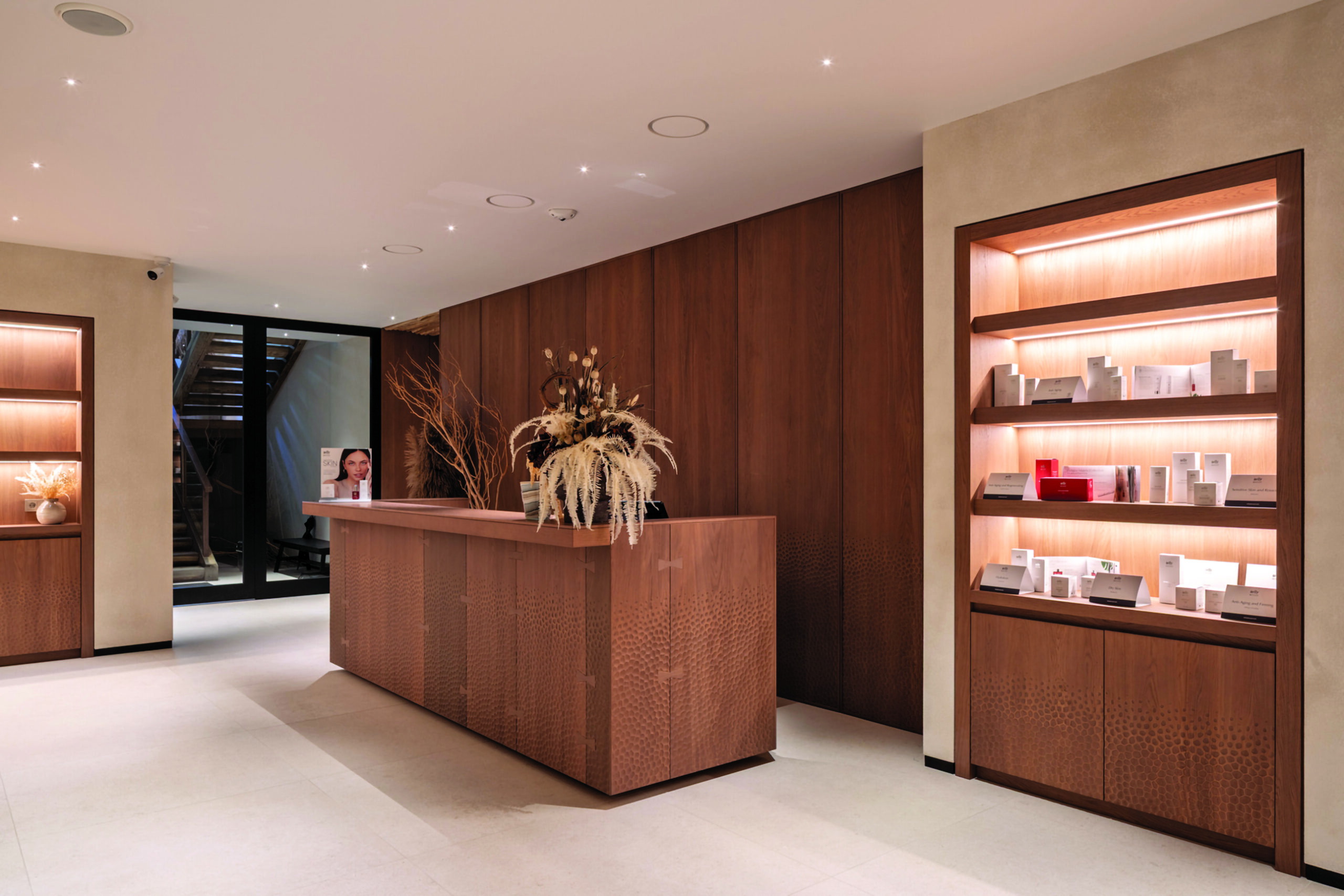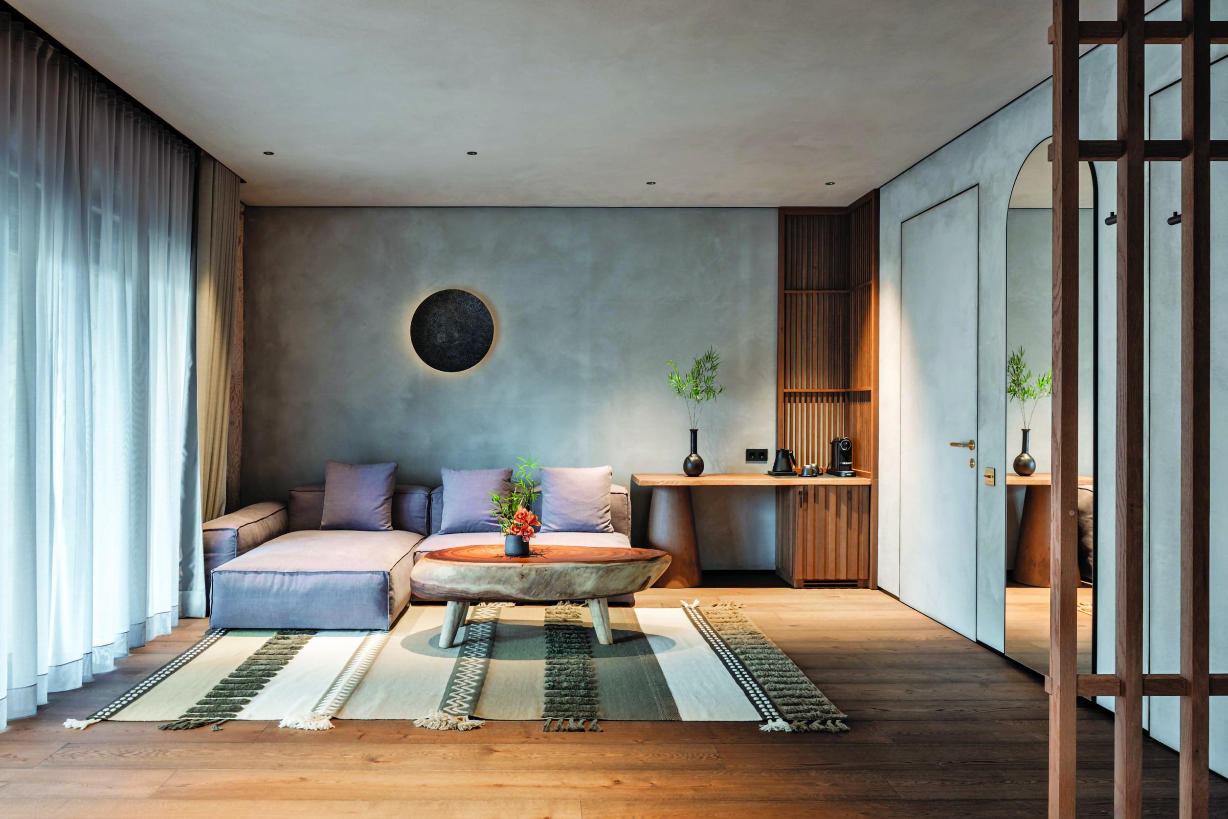 Didžiausias iššūkis renovacijos metu, pasak direktorės, buvo išsaugoti originalų pastato kedro rąstų fasadą – pagrindinį kurorto identiteto bruožą. Reikėjo itin atsargiai šiuos šimtamečius rąstus integruoti į rafinuotesnį, minimalistinį dizainą. Užuot dengusi ar keitusi rąstus, renovacijos komanda išryškino jų natūralius netobulumus, paliko fasadą autentišką ir matomą, tuo pat metu subtiliai sluoksniuodama naujas medžiagas ir tekstūras. Šios skrupulingos nauja ir sena pusiausvyros paieškos pareikalavo ir architektūrinio tikslumo, ir kūrybinio santūrumo.