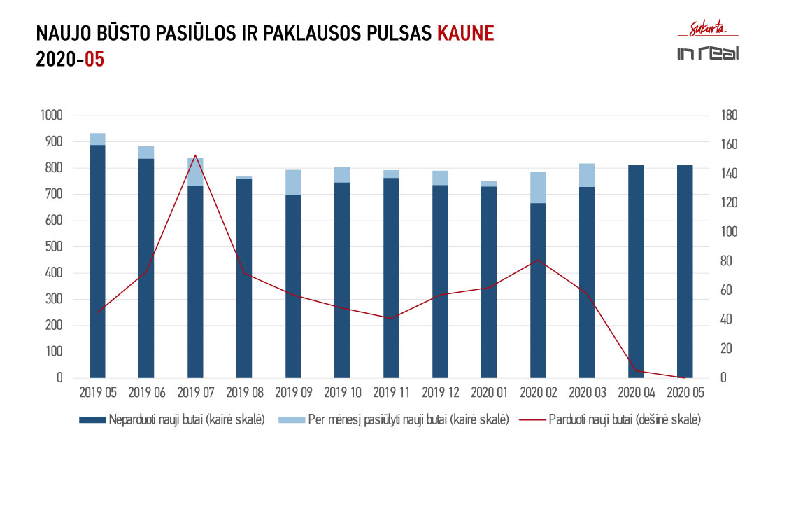 „2020-ųjų gegužė buvo išties įdomus mėnuo pirminei būsto rinkai. Nors suminiai rezultatai yra labai panašūs kaip ir balandžio mėnesį, tačiau reikšmingai pasikeitė rodiklių dedamosios. Visų pirma, atšaukimai susikoncentravo pavieniuose projektuose. Naujų projektų įvedimas į rinka paskutiniais mėnesiais egzistuoja tik Vilniuje, tad formaliai sostinėje būsto sandėlis auga ir toliau. Kita vertus, dalis plėtotojų pristabdė naujų, jau paskelbtų ir „iš brėžinių“ parduodamų projektų vystymą, tad realus būsto pasirinkimas mažėja“, – teigia „Inreal“ investicijų ir analizės vadovas Tomas Sovijus Kvainickas. Pasak jo, kol kas anksti koreguoti sandėlio rodiklius dėl tokių pristabdytų projektų, nes jų paruošiamieji darbai atlikti, tereikia pradėti statyti, tad sandėlio dydis ateityje priklausys nuo bendros ekonominės situacijos.