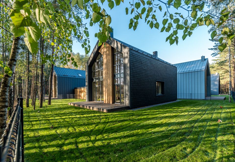 „Lazdynų riešutų“ namų pirmame aukšte įrengta svetainė ir virtuvė, darbo kambarys, sanitarinis mazgas bei katilinė. Antras aukštas yra poilsio zona. Jame – du vaikų miegamieji, atskiras sanitarinis mazgas vaikų kambariams bei tėvų miegamasis taip pat su atskiru sanitariniu mazgu, drabužinė. „Kitaip tariant, name yra absoliučiai viskas, ko reikia patogiai gyventi. Be to, suaugusiųjų miegamasis yra su vaizdu į mišką. Būnant jame atrodo, kad stovi tiesiog miške, medžiai pasiekiami ranka“, – sako S. Volkov ir priduria, kad šie namai orientuoti į aktyviai dirbančias, tačiau jaukumą puoselėjančias šeimas.