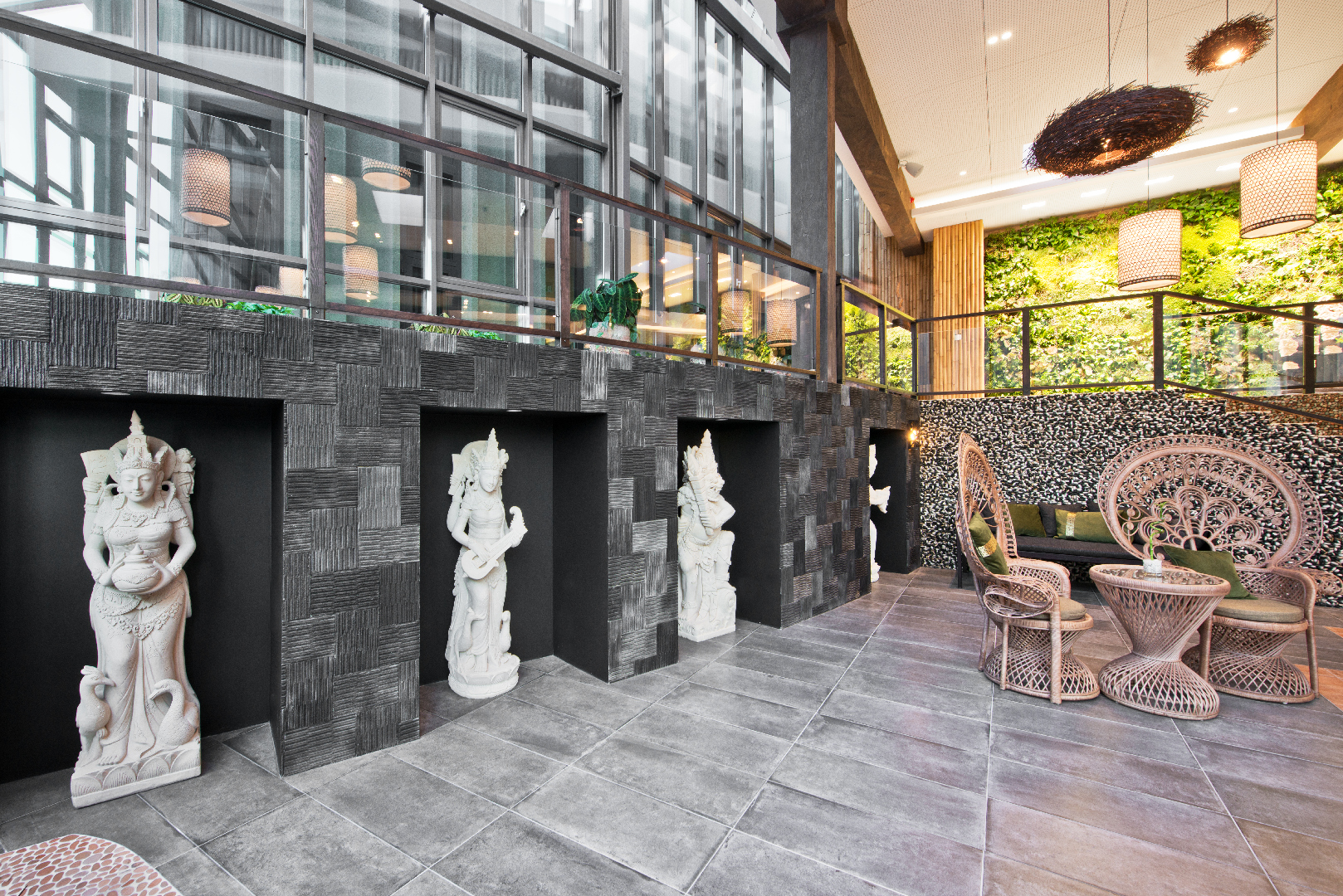 Siekdami kuo aiškiau perteikti Balio salos dvasią ir sužadinti ramybės bei pasitenkinimo gyvenimu jausmą, viešbučio „Flores“ ir SPA centro interjero kūrėjai taikė nemažai drąsių ir neįprastų sprendimų. Kai kuriuose kambariuose esančios vonios ir dušai neatskirti pertvaromis, medinės kriauklės, yra ir rankų darbo smiltainio sienos… Vienam įspūdingam kambariui teko gaminti stiklinį lovos galvūgalį, kad už jo būtų matoma rytietiška rankų darbo siena, nes norėta perteikti ne tik nuotaiką, požiūrį į gyvenimą, bet ir žmogaus rankų darbo grožį. Nelengva užduotimi tapo SPA patalpų funkcionalumo ir Indonezijos estetikos suderinimas. Tai pavyko padaryti pasitelkiant bambuko užuolaidas bei apdailą, rankų darbo dirbinius ant sienų, iš Rytų atgabentus baldus, dušų kabinoms naudojant ne standartines plyteles, o jūros akmenėlius. SPA centre procedūros atliekamos ant išskirtinių vandens masažinių stalų, atogrąžų lietaus plaunamų gultų bei marmuro luitų. Darbas buvo sunkus ne tik trokštant įkūnyti užsakovą viziją, bet ir tiesiogine prasme – viešbučio „Flores“ ir SPA centro vartai, marmurinės vonios, rankų darbo akmenukų apdaila sveria tonas.