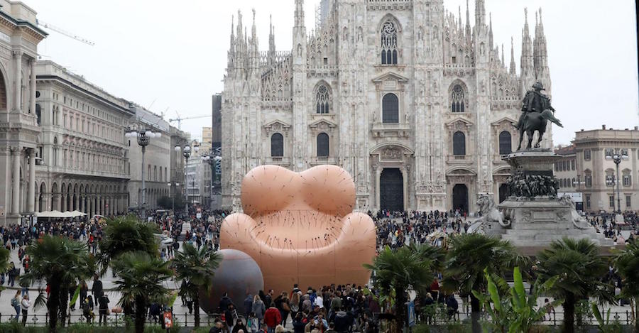 Labiausiai apkalbėta Milane priešais Domo katedrą įrengta 50-metį šventusio „Gaetano Pesce“ kartu su B&B italia sukurtas moters silueto fotelis. Beveik aštuonių metrų (26 pėdų) aukščio Up 5&6 fotelį juosia plėšrių gyvūnų ratas. Jie ir fotelis išpurvinti krauju. G. Pesce tikslas buvo kovoti prieš smurtą prieš moteris. Tai yra didelė problema. Ypač dabar, kuomet vyriausybė paskelbė, kad per 72 valandas 1 iš 3 suaugusių moterų patiria fizinę ar seksualinę prievartą.