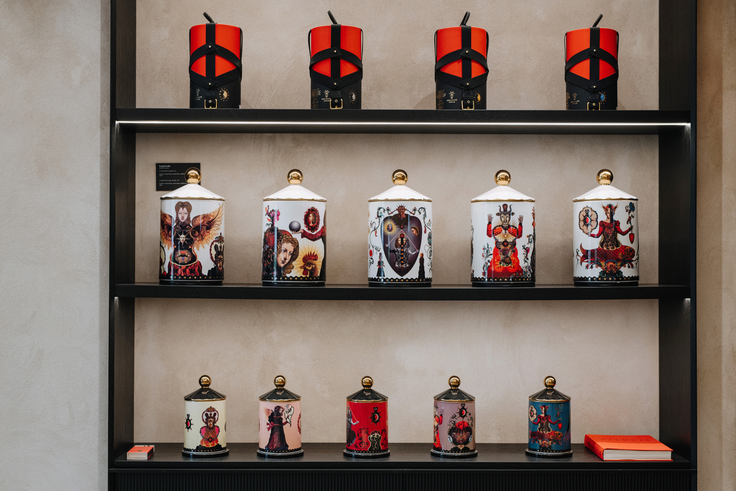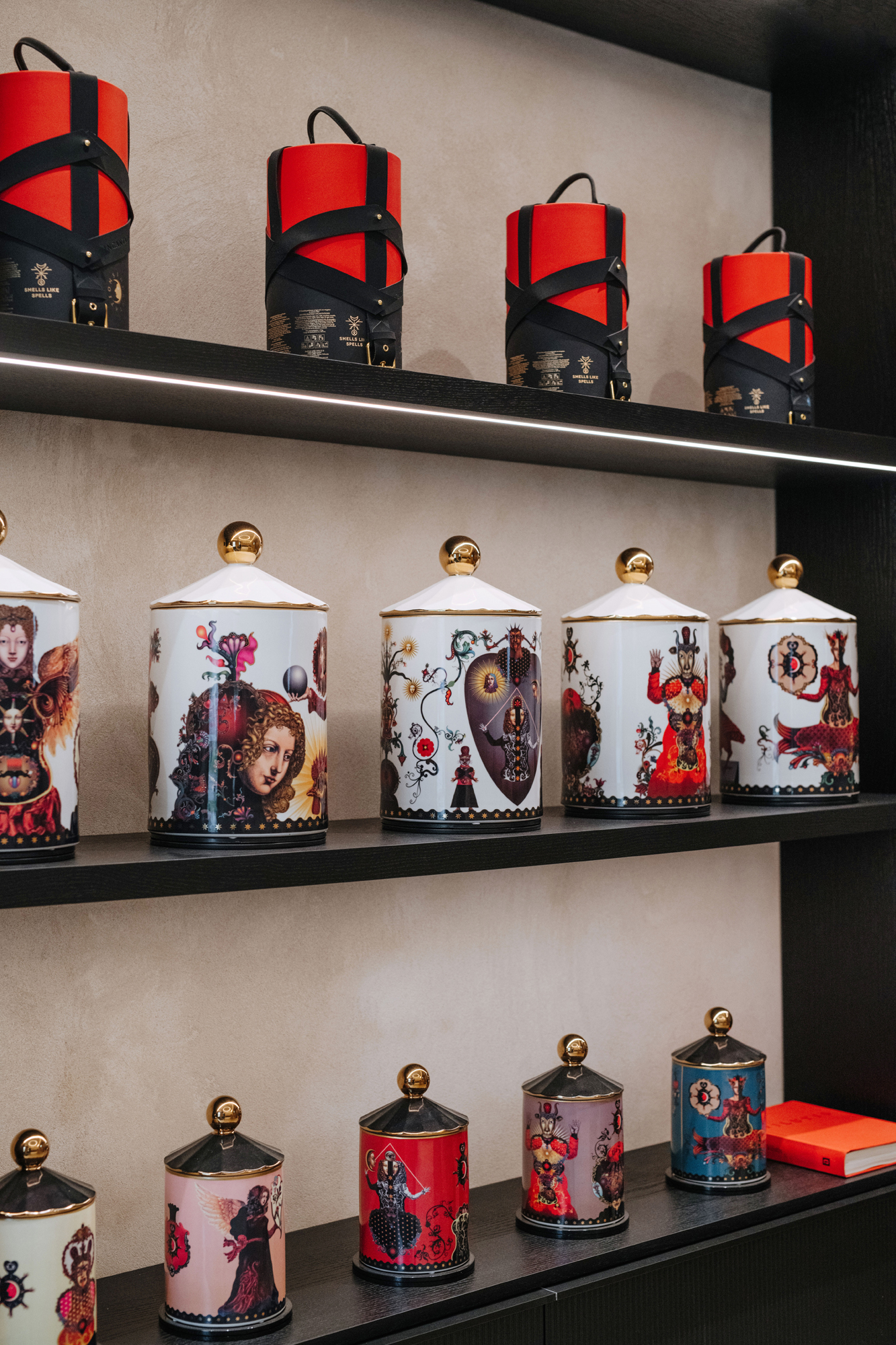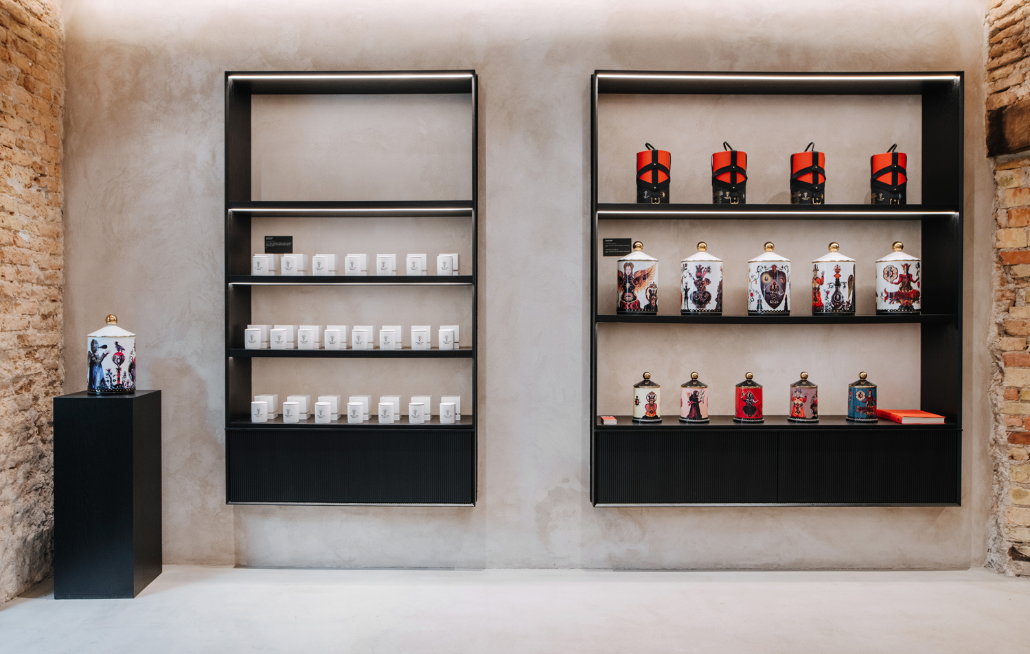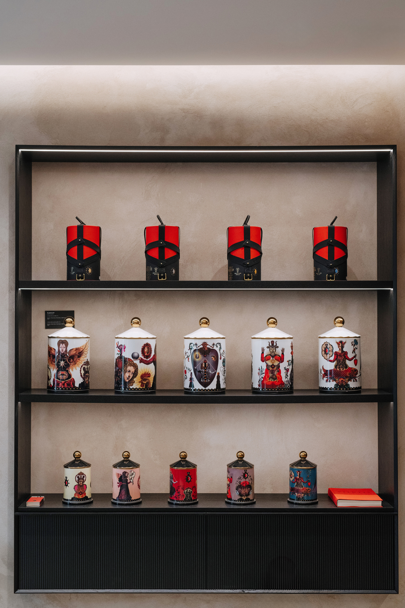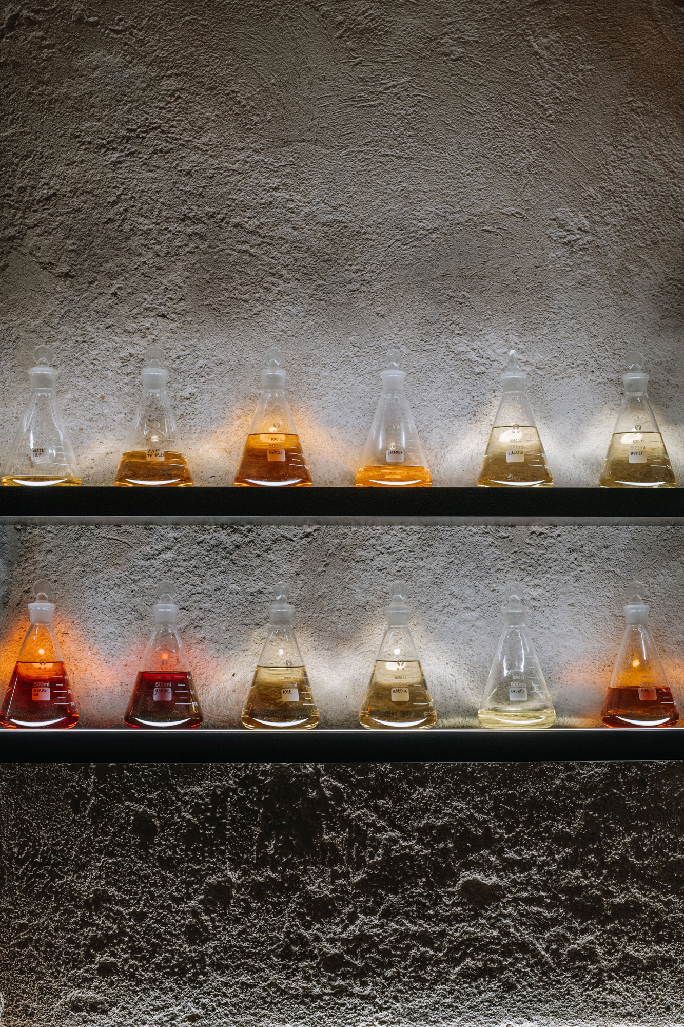 Parduotuvės zona alsuoja moderniu švarumu: akmens masės recepcijos stalas, minimalistinės lentynos kuria išskirtinės estetikos pojūtį. Visa ekspozicija išdėstyta tarsi parfumerijos meno muziejuje. Itin kruopščiai apgalvota vizualinė kompozicija – nuo pakuočių kolorito iki apšvietimo kampo – suteikia daiktams laisvę reikštis. Kiekvienas kvapas čia turi ne tik aromatinę, bet ir erdvinę ekspresiją.