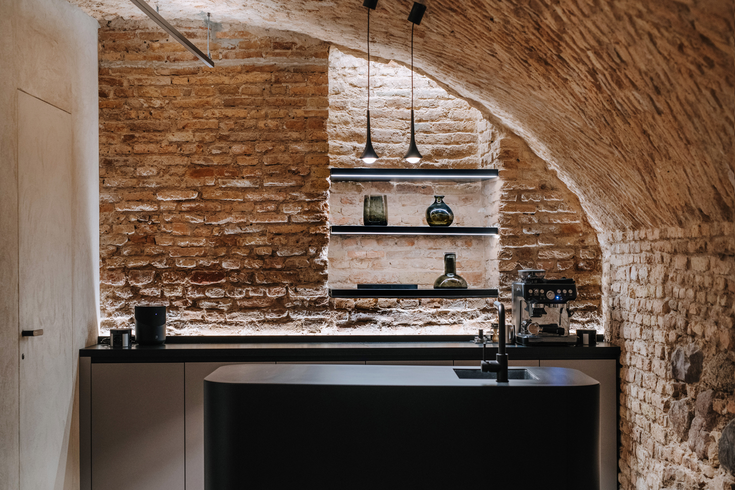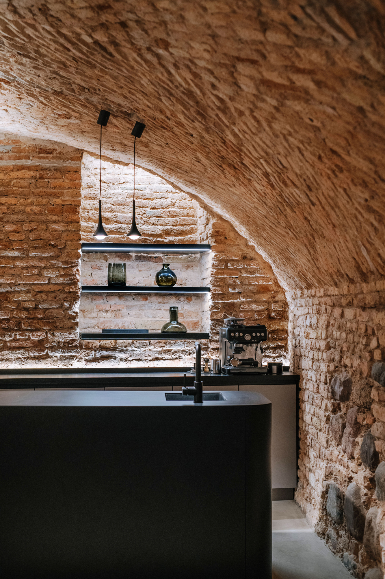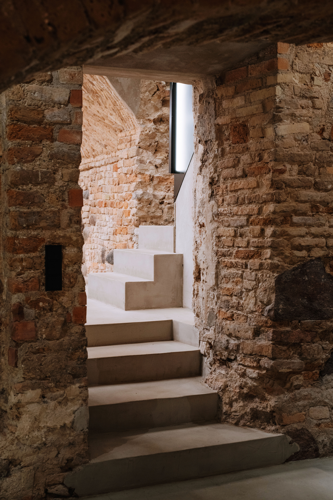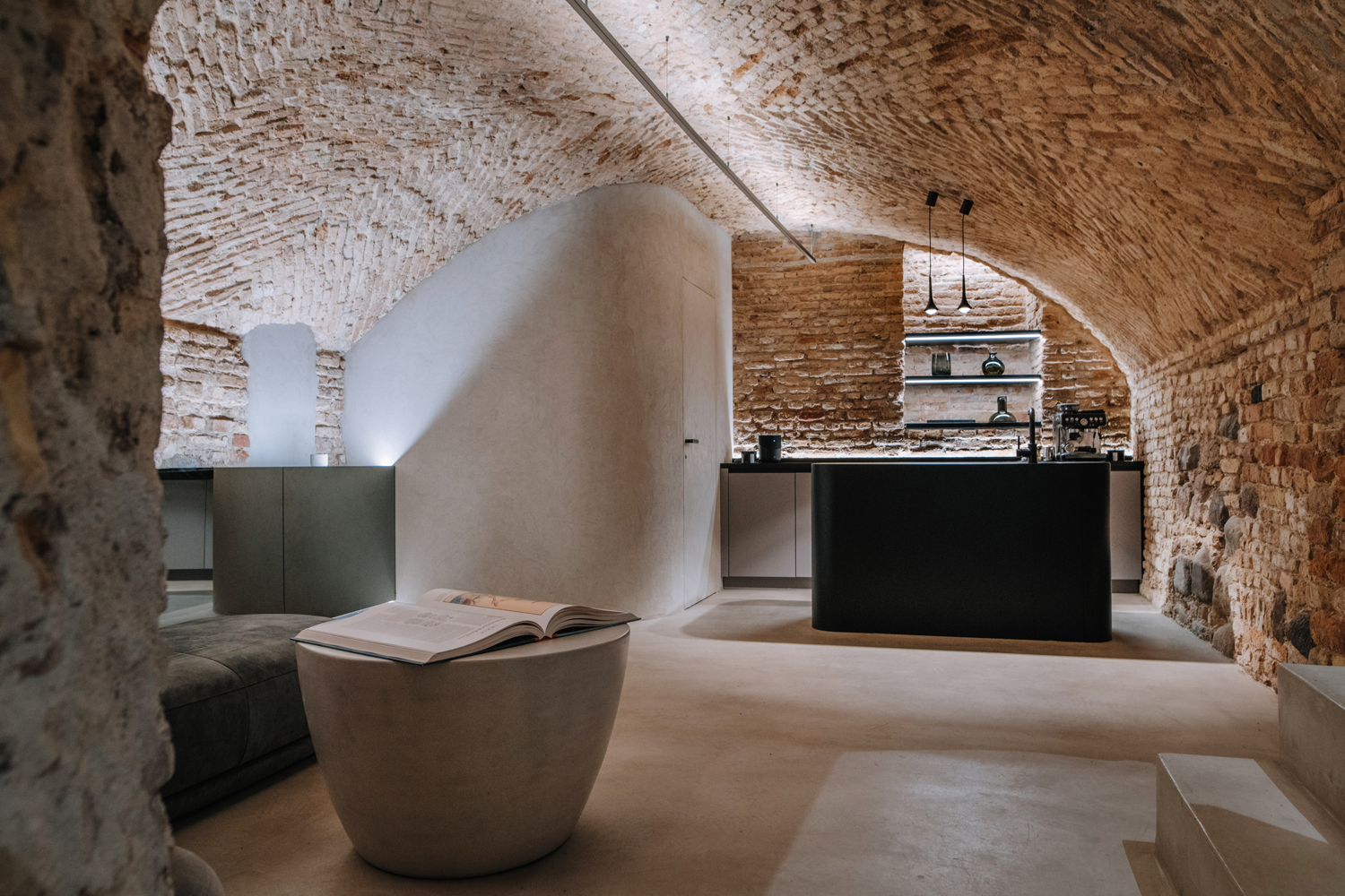 Natūralaus apšvietimo ir šviesos instaliacijų žaismas paryškina medžiagų charakterį, paversdamas kiekvieną kampą vizualiniu potyriu. Apšvietimas šiame interjere tampa nematoma, tačiau itin svarbia dramaturgijos dalimi – jis ne tik išryškina istorinių plytų faktūras ir šiuolaikinių paviršių švarą, bet ir kuria emocinį ritmą visoje erdvėje, kerinčioje natūraliu lėtumu. Čia nėra skubėjimo, stiliaus deklaracijų. Šioje parfumerijos kompozicijoje kiekviena nata žino savo vietą. Tačiau ši erdvė, kaip ir magiški kvapai, turi paslaptį – tunelį, apie kurį nėra nė vieno ženklo oficialiuose planuose ir žemėlapiuose. Jis tarsi slysta po pastatu, veda į kitas erdves, pasiklysta po Vilniaus grindiniu. Tai viena iš paslapčių, kurių nereikia iki galo paaiškinti – pakanka žinoti, kad jos yra.