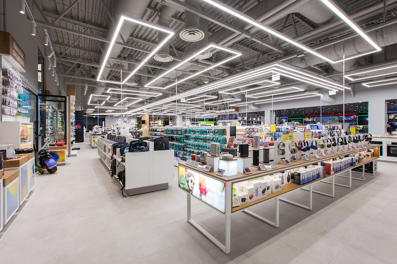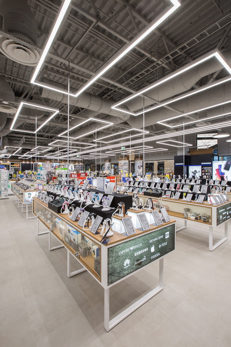 Be kūrybinių sprendimų, buvo priimta ir nemažai funkcinių: palengvinta baldų konstrukcija, iš naujo pagaminti interjero elementai, kuriais siekta atitikti šiuolaikines smulkiosios elektronikos dizaino tendencijas. Sukurtas aiškus pagrindinis klientų srauto takas ratu ir suprantamas suskirstymas sritimis, kad klientai tokioje prekių įvairovėje greitai rastų tai, ko ieško.