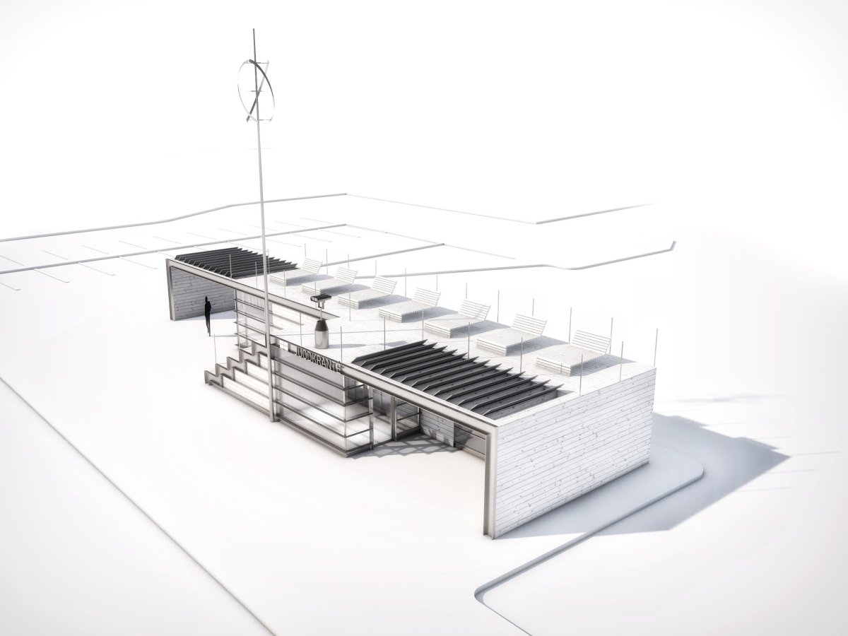 Stotelės išskirtinumą kurs stogo terasa, nuo kurio atsivers tolimesnė perspektyva į Kuršių marių horizontą. Keleiviams laukti taip pat numatytos dvi skaidria medžiaga dengtos stoginės su suolais.