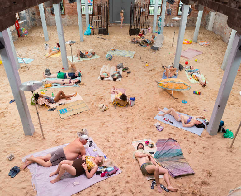 Lietuvai atstovaujantis projektas, nors ir kuria pozityvią nuotaiką, vis dėlto kviečia mąstyti apie labai rimtas temas: klimato kaitą, visuotinį nuovargį, globalinį atšilimą, kūniškumą, ekologiją, vartotojiškumą. Menininkių darbas stebina ir specifiniu eksponavimu: ant 35 tonų smėlio įsikūrusius dainuojančius vasarotojus žiūrovai stebės iš viršaus. Tokiai kūrinio scenografijai reikalingą erdvę paviljono organizatoriai surado istoriniame Venecijos arsenale, kur anksčiau veikė laivų statykla.