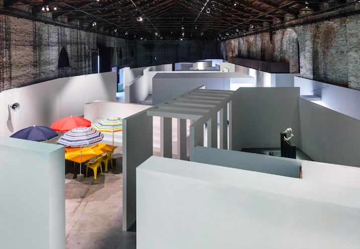 Venecija yra lyg labirintas. Miestas sužavėjo ir įkvėpė meninkus Jorge Luis Borges ir Calvino, kurie sukūrė Italijos paviljoną. Jie pristato trijų svarbių italų menininkų – Enrico David, Chiara Fumai ir Liliana Moro – kūrinius, kurių išdėstymas nėra nei linijinis, nei gali būti sumažintas iki tvarkingų ir nuspėjamų trajektorijų. Tai paroda, kurioje galite mėgautis išsiplėtusio laiko pojūčiu ir sunykti erdvėje. Tai yra žavingas bienalės šeimininko gestas, leidžiantis įvairiais atradimais ir kūriniais tapti kitos skalės, materijos eksponatais.