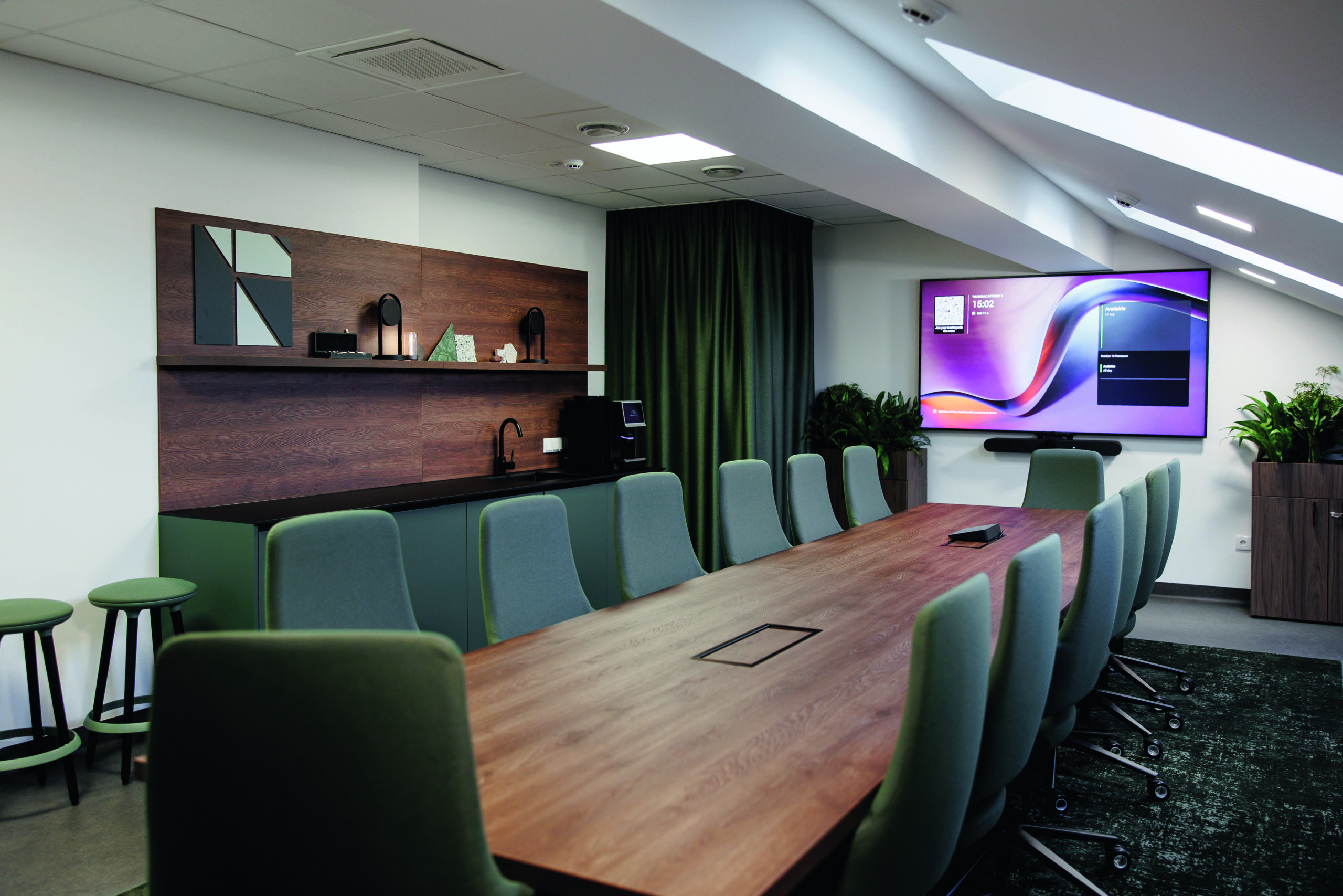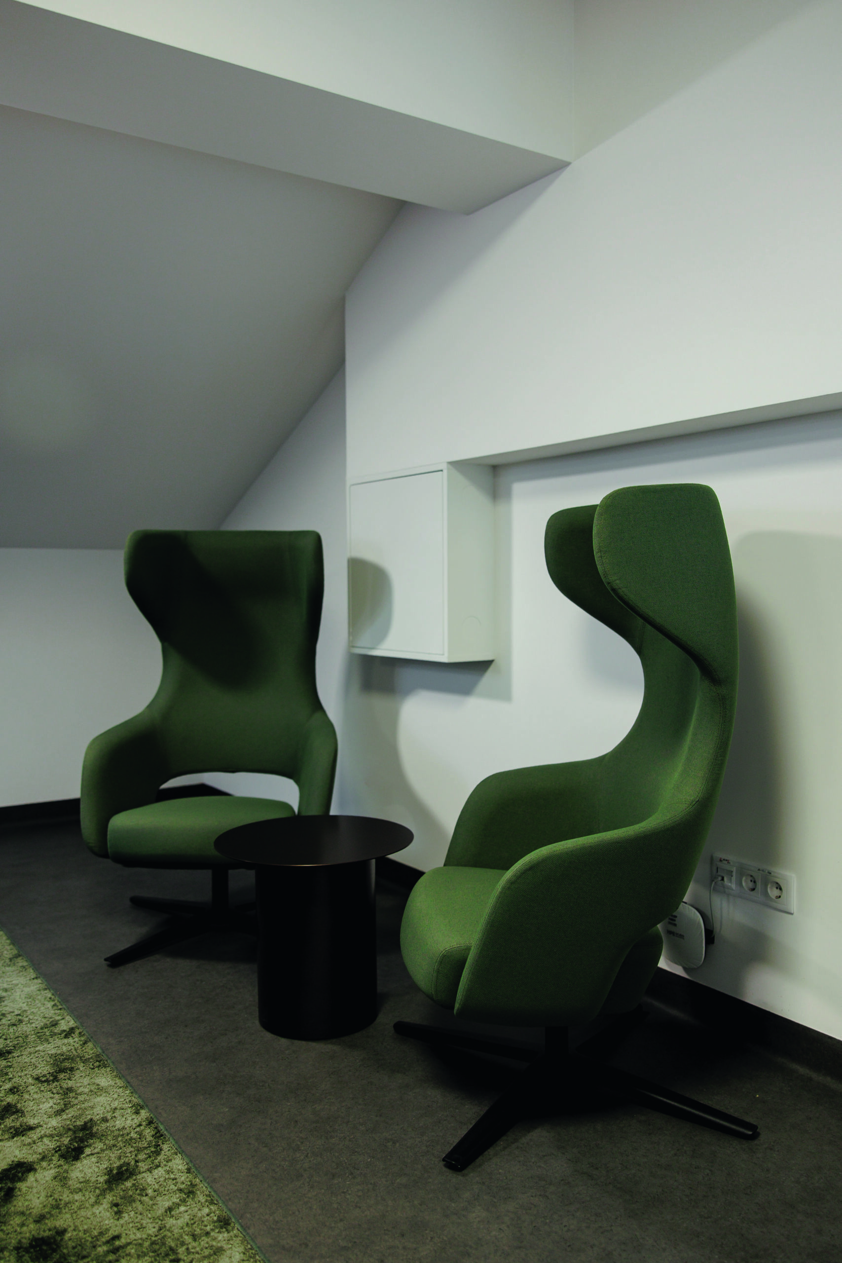 Pasitarimų erdvėms ir darbo vietoms pasirinkti ypač patogūs kolekcijos „Sandie“ kėdės ir krėslai, susitikimų kambariuose – minimalistinio dizaino kėdės „North Cape“ su ratukais ir be porankių. Lankytojams skirtos kėdės „Twist&Sit“. Didžioji dalis korpusinių baldų – iš kolekcijos „Choice“, prie kiekvienos darbo vietos integruotos daiktadėžės „Boxi“. Pasitarimų stalai gaminti pagal „Plana“ kolekciją.