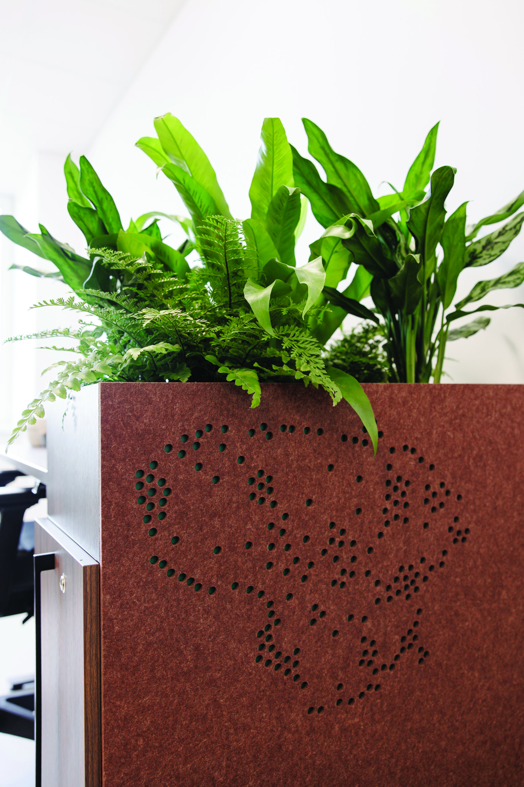 „Kurdama šią erdvę siekiau, kad ji būtų ne tik racionali, bet ir gyva. Kiekvienas darbuotojas šalia savęs turi augalą – nedidelį, bet prasmingą gyvosios gamtos fragmentą. Tai sąmoningas sprendimas: augalai tampa ne tik interjero elementu, bet ir simboliu. Jie primena, kad institucijos darbas yra tiesiogiai susijęs su gyvybe, augimu ir ryšiu su aplinka“, – sako architektė.