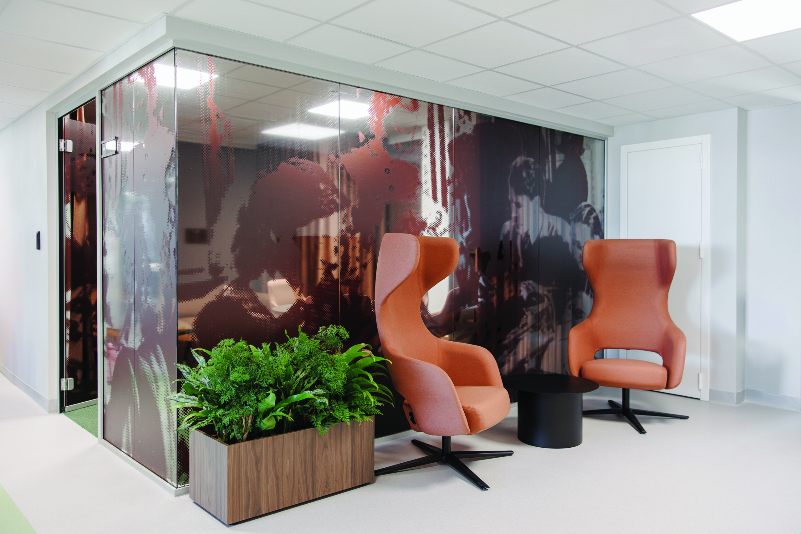 Aliuminio ir stiklo pertvaromis sukurta atvira, jauki ir šviesi darbo kabinetų erdvė. Dienos šviesa pro pertvarų stiklą gali laisvai sklisti visame biure, todėl patalpos atrodo didesnės, o darbuotojai jaučiasi mažiau izoliuoti. Į aliuminio rėmus integruoti stiklo paketai slopina triukšmą ir gerina darbuotojų koncentraciją.