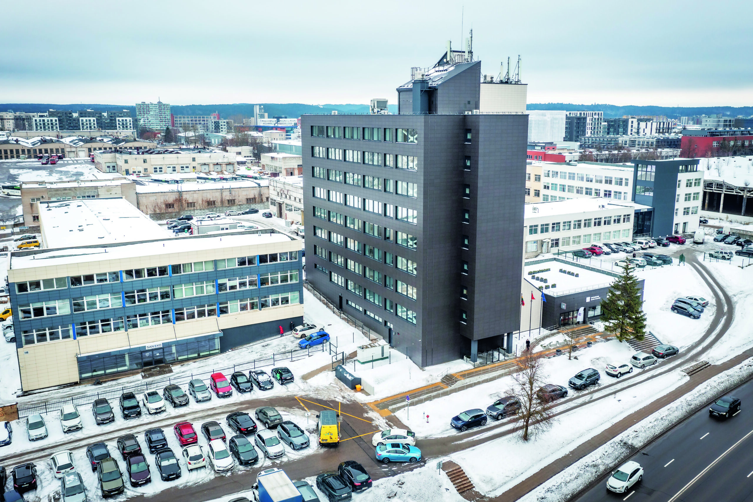 Skardos ir metalo apdirbimo įmonė „Skardvila“ administracinio pastato modernizavimo projektui parūpino per 3000 m įvairių skardos gaminių. Dauguma jų ir pagaminti būtent šiam objektui: skirtingų matmenų lauko palangės, angokraščiai, parapetų skarda, apsauginės stogo tvorelės, priešgaisrinės sienų kopėčios ir kt.