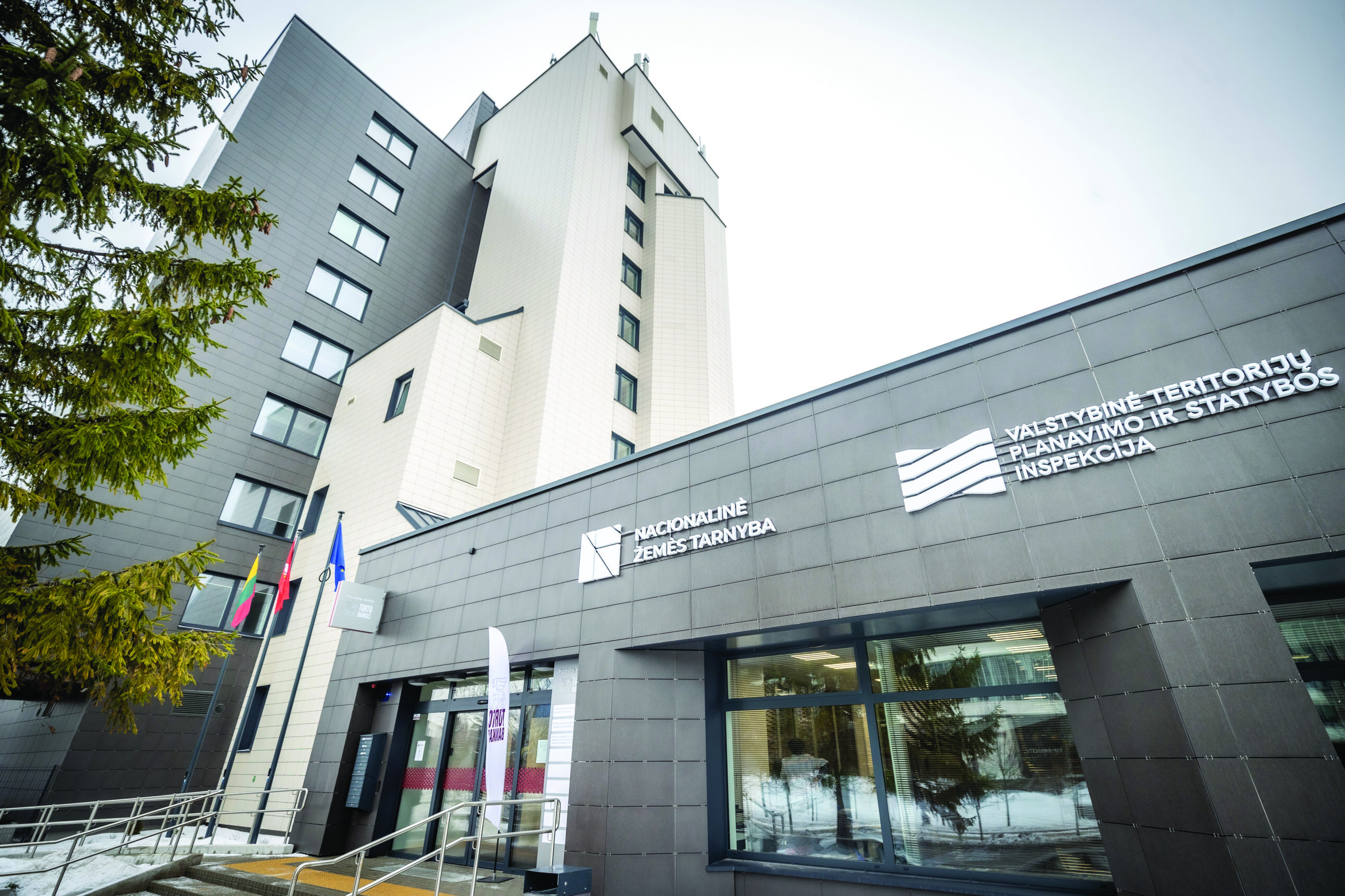 Per tris renovuoto administracinio pastato aukštus įsikūrė Nacionalinė žemė tarnyba (NŽT).