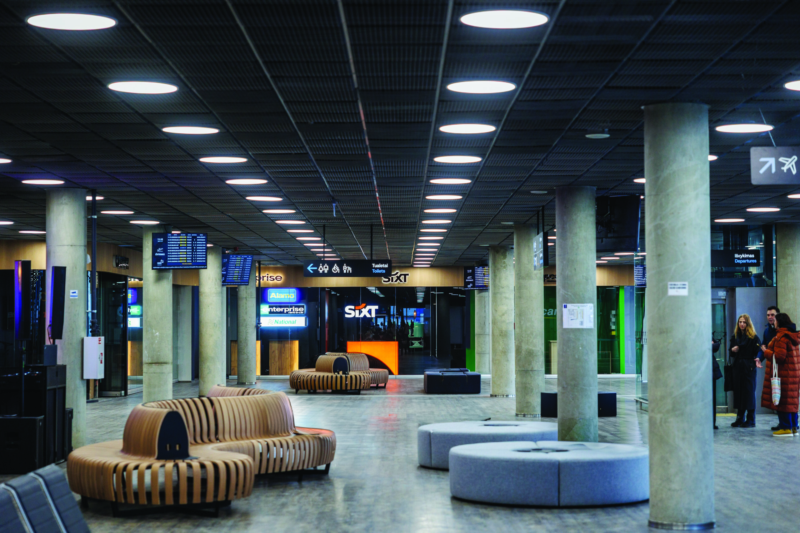 Įmonė „Furniline“ naujajam oro uosto terminalui gamino ir montavo keleivių poilsiui skirtus ąžuolo lukštu dengtus aptakių formų suoliukus, kurių pirminį variantą galima matyti naujajame VNO Išvykimo terminale.
