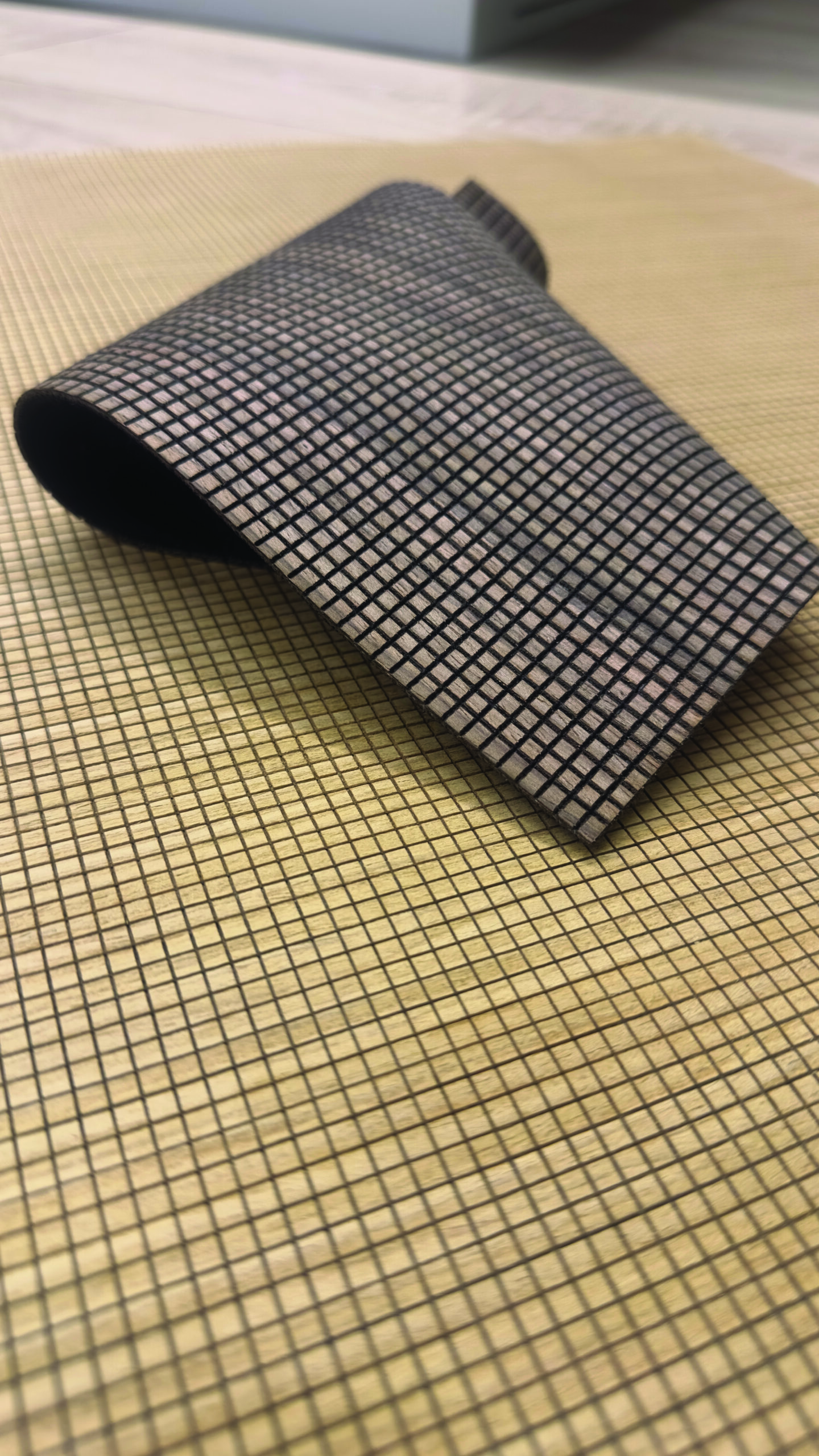Ne mažesniu iššūkiu „Bauen“ komanda vadina pakabinamų lamelių su specialia ąžuolo rašto imitacija gamybą.