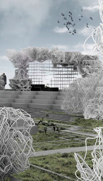 Trečiosios vietos nugalėtojai skelbia, kad vizualizuoti architektūrą ir suvokti erdvę galės tik robotų ir žmogaus atliekamų veiklų tarpusavio koordinavimas.