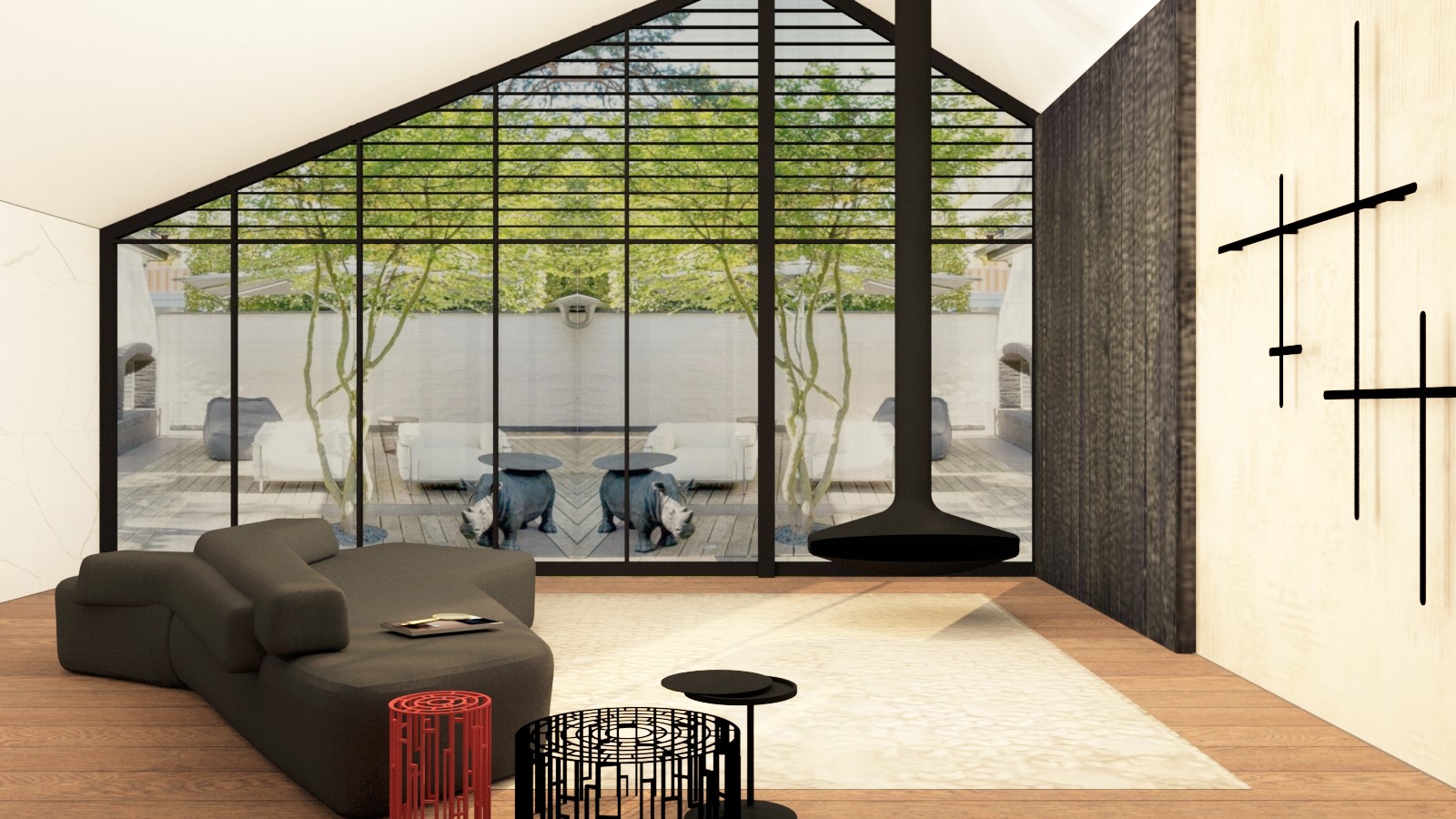 JUNG. Projektui parinkta į ateitį orientuotų pastatų automatizuoto valdymo sistemų ir griežtų linijų jungiklių serija „LS 990 Les Couleurs® Le Corbusier“. Spalvotas jungiklių korpusas puikiai dera su kitais interjero akcentais ir atlieka stilingos bei funkcionalios detalės vaidmenį. Šio protingo namo funkcijos sujungtos į vieną tinklą naudojant išmaniąją sistemą KNX, be to, yra valdomos centralizuotai. „Jung“ išmanieji jutikliniai ekranai suteikia galimybę į sistemą integruoti įvairias multimedijos sistemas, sukurti įvairius gyvenimo scenarijus ir atverti daug papildomų galimybių šeimininkams mėgautis gyvenimo kokybe bei komfortu.