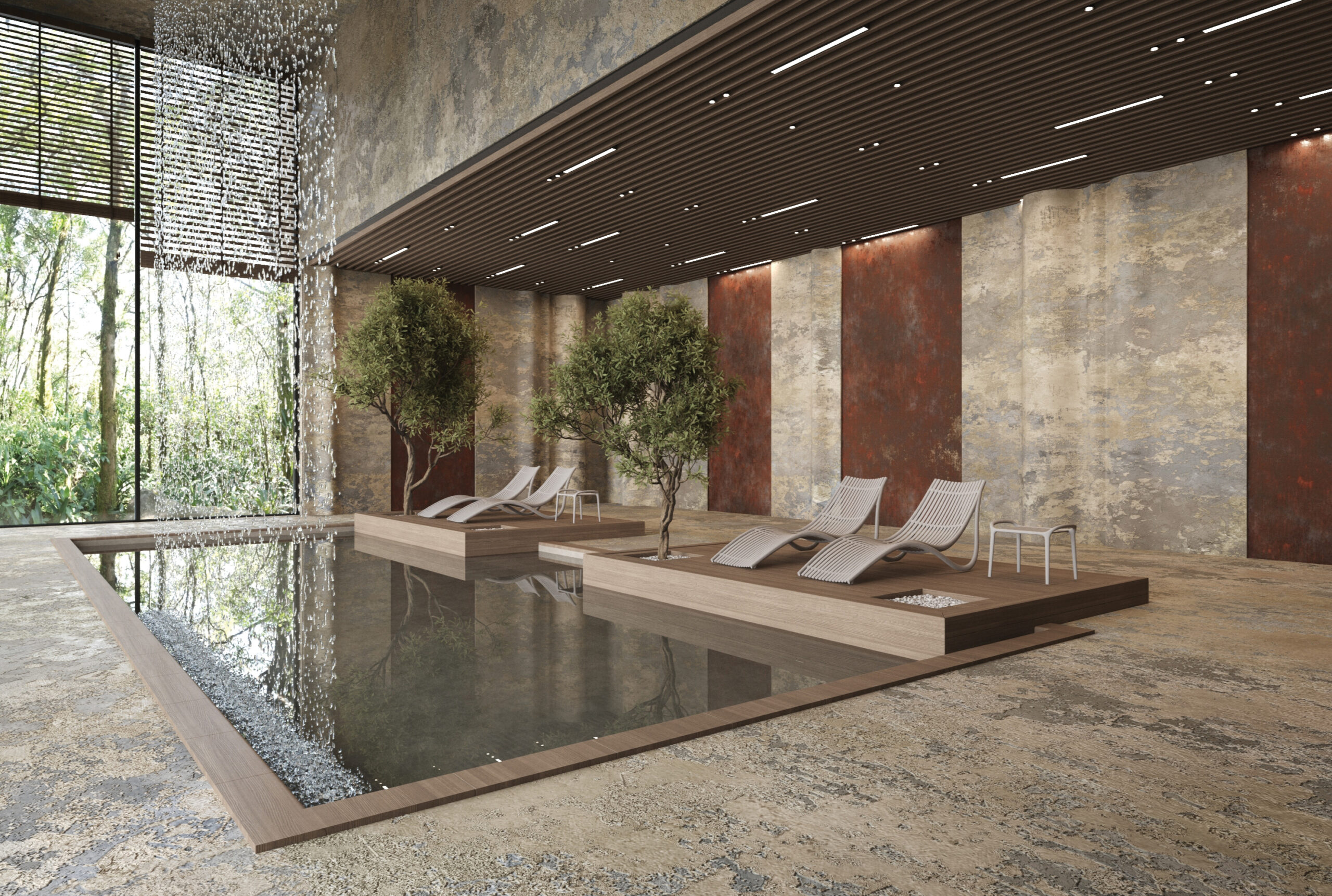 GRINDŲ ARSENALAS. SPA poilsio zonoje prie baseino panaudotos Grindu Arsenalas ąžuolo parketlentės „Tartufo Bianco Grande“, kurios sudaro natūralų ir šiltą pagrindą gultams bei poilsio erdvėms. Šis pasirinkimas sustiprina komforto pojūtį, vizualiai dera su aplinkos estetika ir prisideda prie harmoningos, kviečiančios poilsio zonos kūrimo.