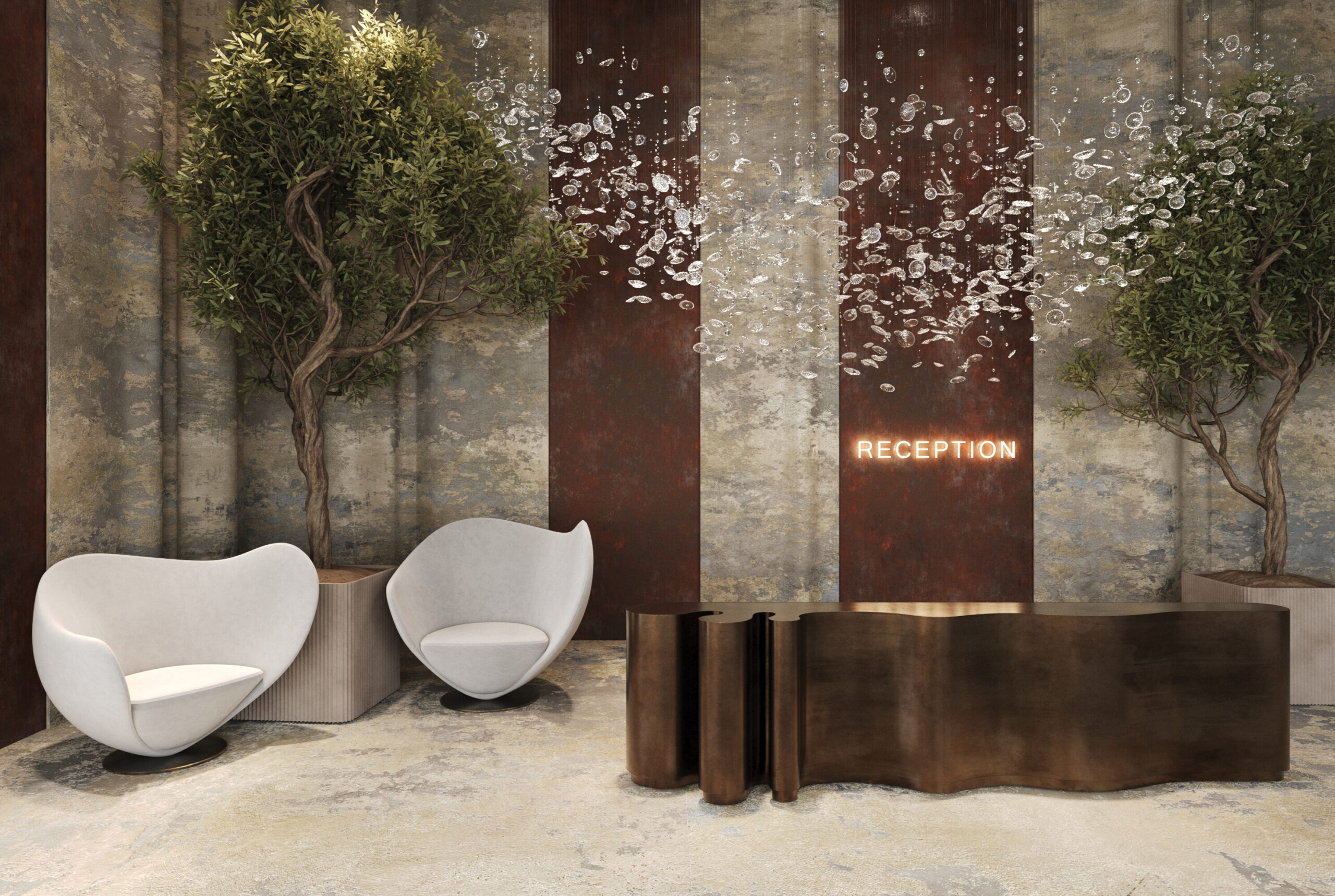 RB SOLUTIONS. Viešbučio interjere RB SOLUTIONS sprendimai pasirūpino komfortu, funkcionalumu ir estetikos vientisumu įvairiose erdvėse. Miegamųjų kambariuose naudojami MISSANA kolekcijos Twin Moon sofa ir pufai, užtikrinantys elegantišką poilsio zoną. Registratūros zonoje integruoti La Cividina Mon Coeur foteliai, kurių proporcijos ir minimalistinis dizainas kuria modernią, kviečiančią atmosferą. Poilsio zonoje prie baseino panaudoti VONDOM IBIZA SUN LOUNGER gultai ir šoniniai staliukai, suteikiantys stilingą ir komfortišką laisvalaikio erdvę. Restorano zonoje pasirinktos La Cividina Serie 50 W sofos, kurios užtikrina estetišką, patrauklią ir funkcionalią sėdėjimo patirtį. Visos šios detalės parinktos taip, kad būtų suderintos su interjero koncepcija ir suteiktų vientisą, kokybišką bei komfortišką erdvės įspūdį.