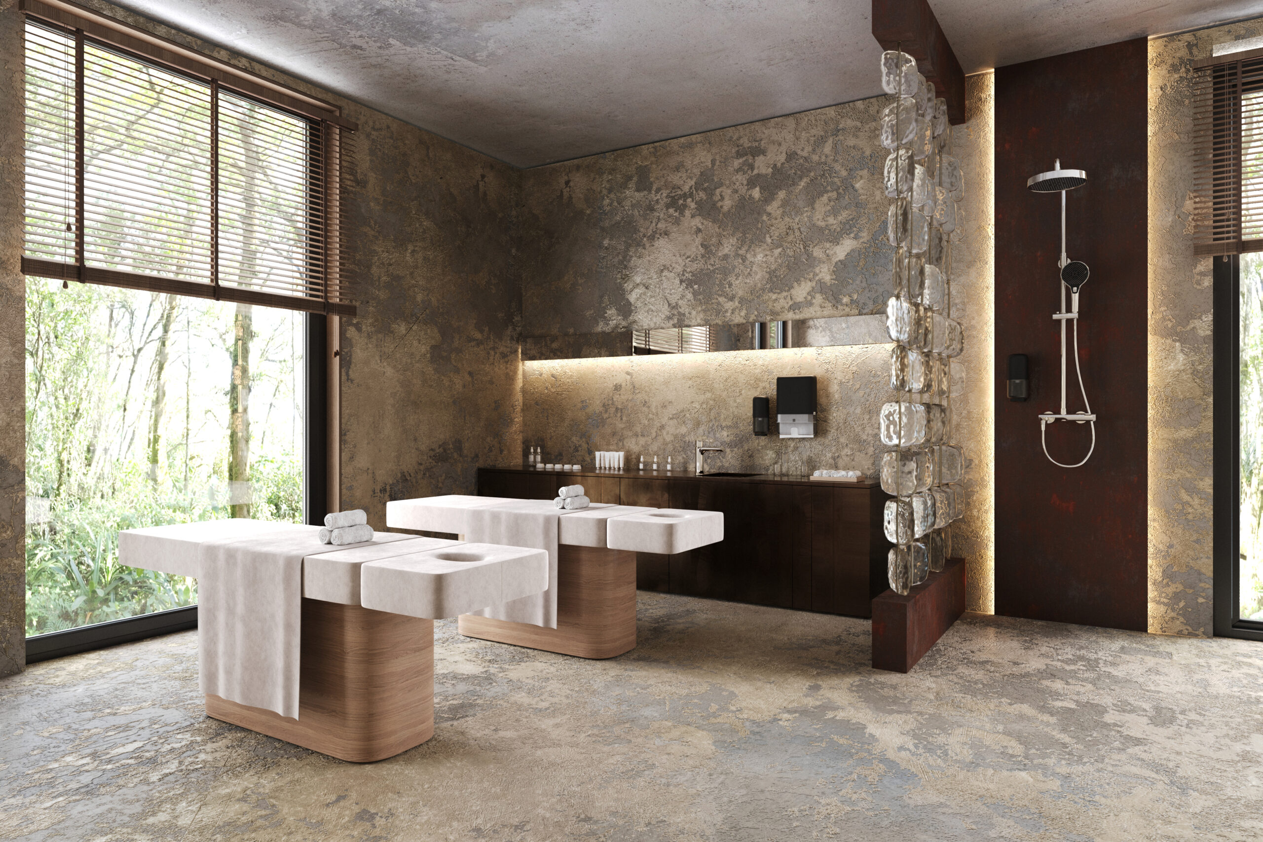 Lakoniškas „Elevation“ serijos dizainas leidžia šiuos elementus subtiliai integruoti į minimalistinę masažo kambario aplinką, išlaikant erdvės švaros, ramybės ir profesionalumo pojūtį.