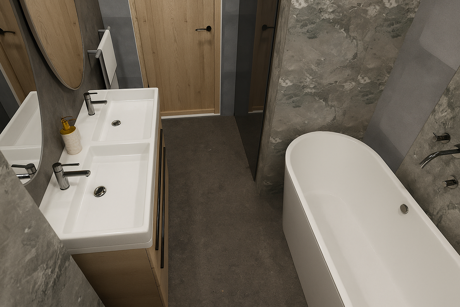 GROHE interjere panaudoti maišytuvai, užtikrinantys modernų dizainą, precizišką kokybę ir ilgaamžiškumą. Virtuvėje pasirinktas „Grohe Lineare S“ maišytuvas su dugno vožtuvu, suteikiantissubtilios estetikos ir funkcionalumo dermę. Vonios kambaryje – „Grohe Concetto“ keturių dalių voniosmaišytuvas, įnešantis elegancijos ir patogumo kasdieniam naudojimui.