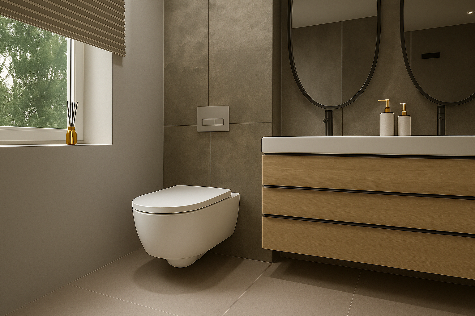 GEBERIT. Šiame interjere įrengtas Geberit iCon pakabinamo WC puodo rinkinys su elegantišku ir lengvai prižiūrimu dizainu, suteikiančiu erdvės pojūtį bei modernų minimalizmą. Jis derinamas suGeberit Delta50 nuleidimo mygtuku, kuris išsiskiria paprastomis, aiškiomis linijomis ir patogiunaudojimu.
