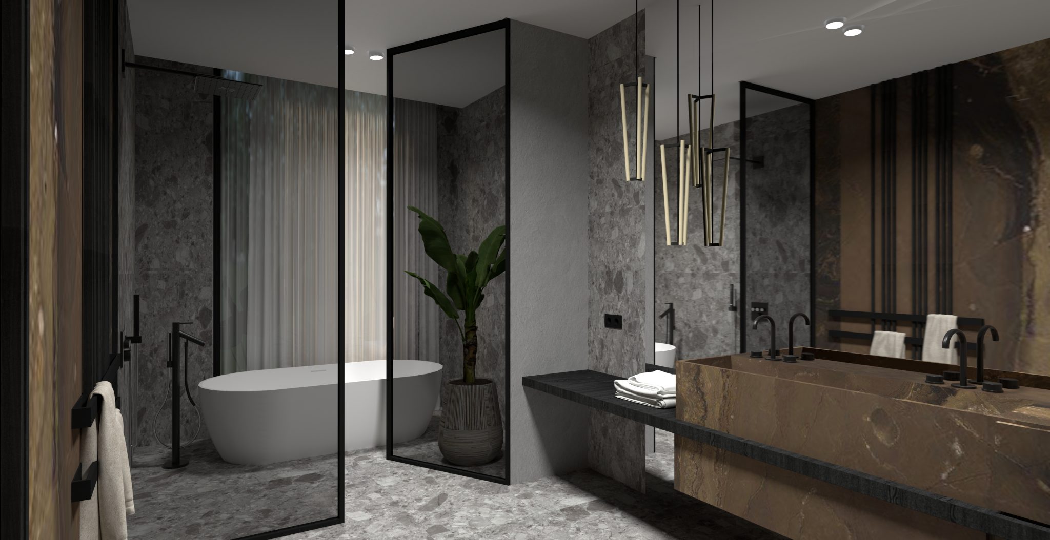 GROHE. Kuriant ateities namus, svarbu atsižvelgti į santechnikos pasirinkimą, nes jos ilgalaikiškumas ir kokybė gali daug pasakyti apie patį interjerą. Visame name pasirinktas vokišką kokybę atitinkantis prekių ženklas „Grohe“. Charakteringos grafito spalvos serijos „Atrio“ vandens maišytuvai tampa vonios kambario ir virtuvės akcentais. Virtuvėje naudojamas maišytuvas su patogumą užtikrinančiomis papildomomis funkcijomis „Red“ (verdantis vanduo) ir „Blue“ (filtruotas, gazuotas vanduo). Maksimaliam komfortui ir malonioms akimirkoms duše – sistema „Smart Control“, o prie jos numatomos papildomos dušo galvutės su sistema „Smart Active“.