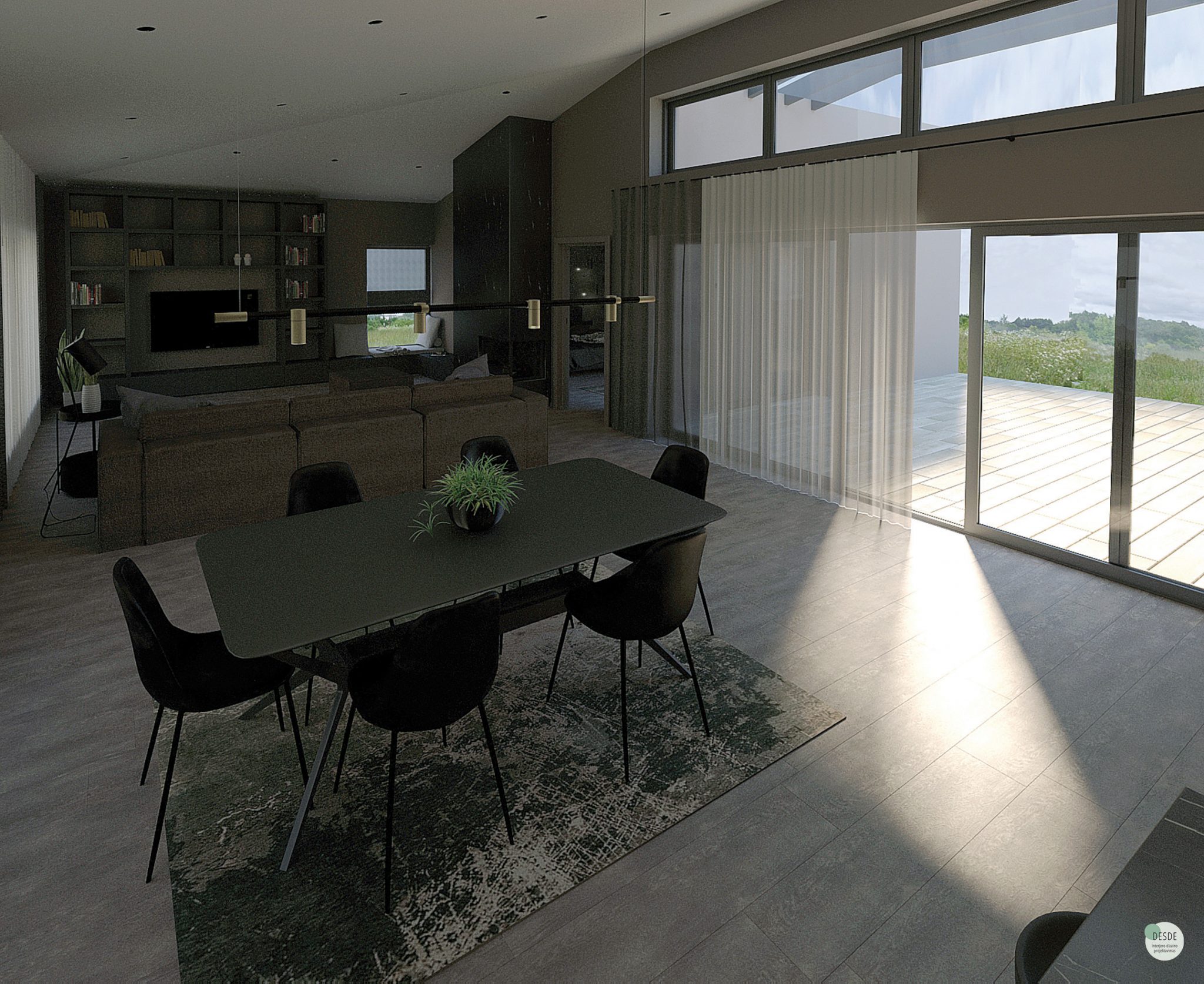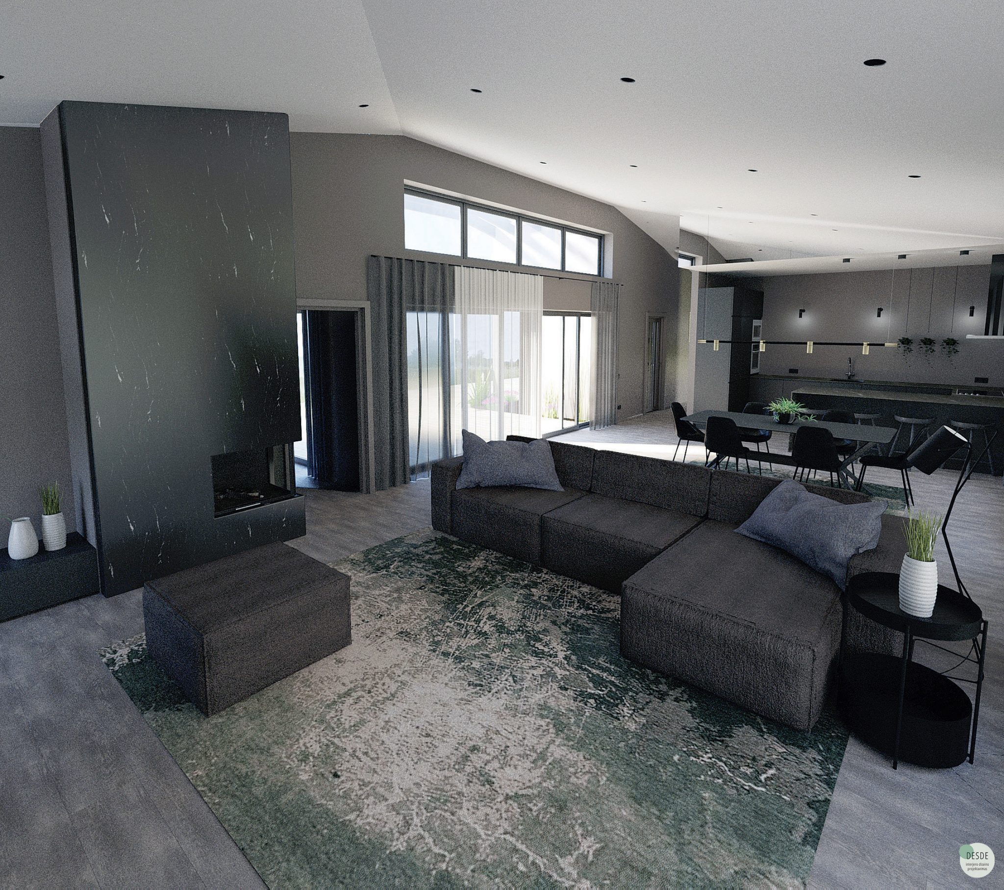 Įsivaizduokime 120 m2 namą šeimai, ieškančiai prieglobsčio nuo šiuolaikinio skubėjimo. Tam suprojektuota vidinė terasa, kurioje galima atsiriboti. Namo vidus taip pat leidžia pajusti subtilios elegancijos dvelksmą. Skubančiame pasaulyje svarbu neperkrauti erdvės, jaukumą derinti su praktiškumu.