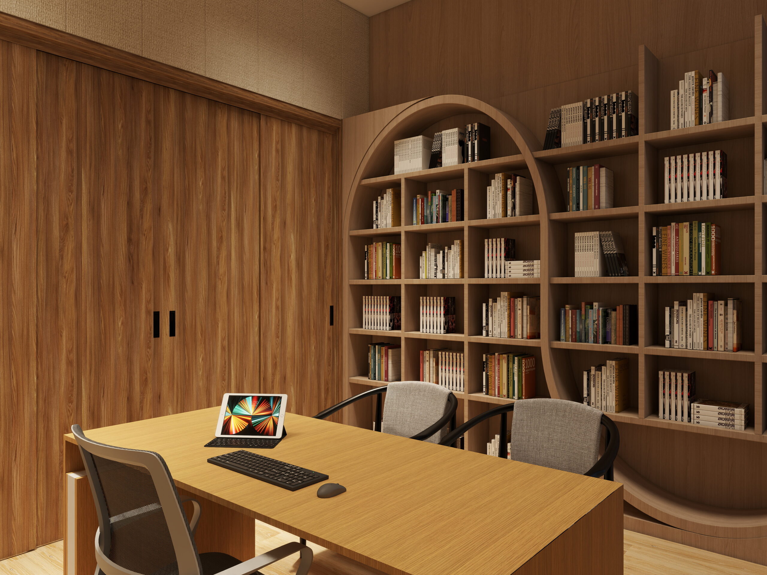 JUNG. Sistema JUNG KNX – tai pažangus ir integruotas šiuolaikinio dizaino biuro valdymas, užtikrinantis efektyvumą ir patogumą. Tokie valdikliai kaip „LS Touch“ leidžia centralizuotai valdyti apšvietimą, pritaikyti temperatūrą, vėdinimą ir žaliuzes prie skirtingų darbo scenarijų. Sistema padeda optimizuoti energijos naudojimą, kurti komfortišką darbo aplinką ir įgyvendinti tvarumo tikslus.