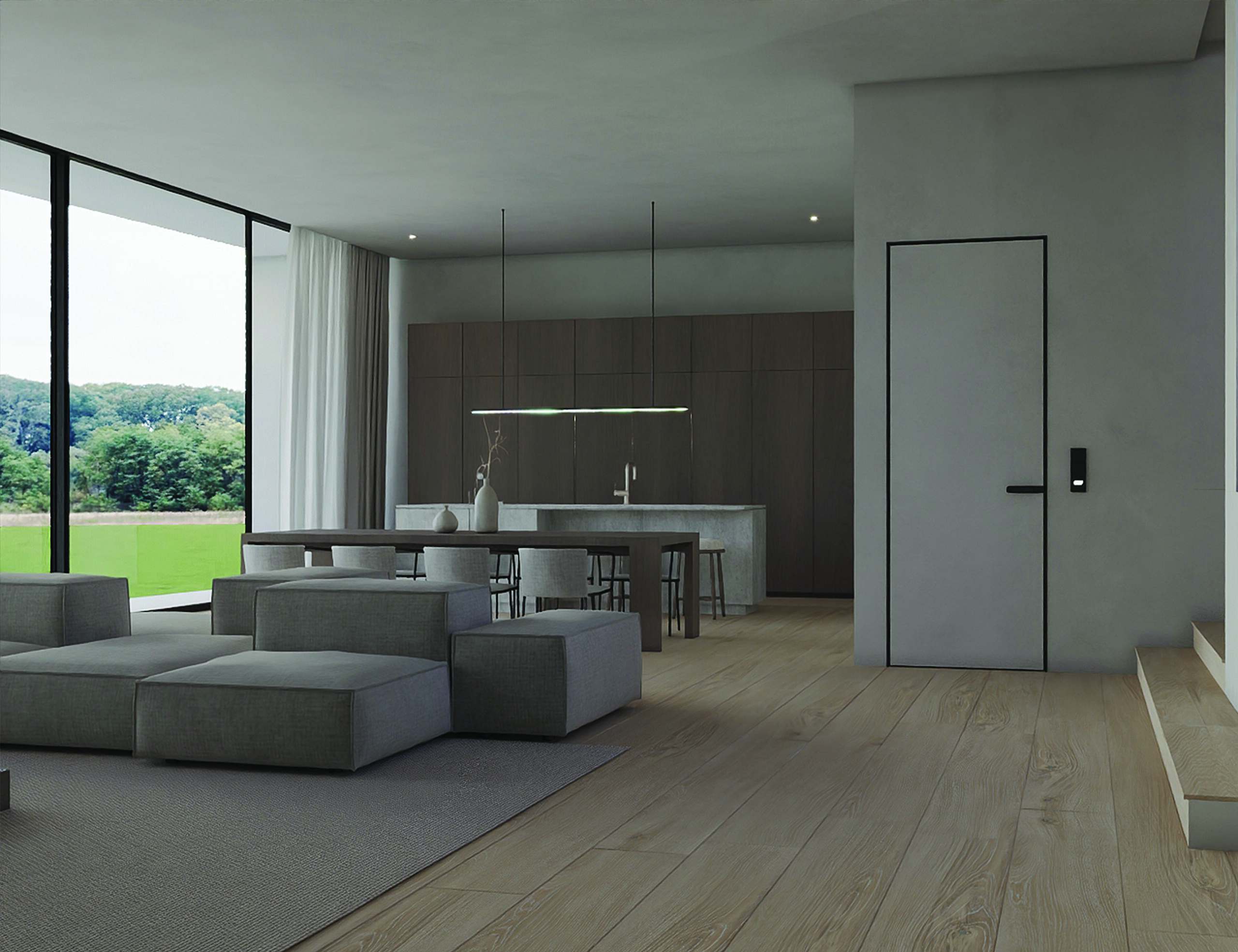 JUNG. Dėl lengvo montavimo, plėtros galimybių ir sklandaus integravimo pasirinkta išmaniojisistema „JUNG HOME“, suteikianti galimybę sukurti namuose išmaniąją aplinką. „Bluetooth Mesh“ technologija užtikrina saugų ir stabilų ryšį be sudėtingos infrastruktūros. Naudojant mobiliąjąprogramėlę patogu nuotoliniu būdu valdyti namų apšvietimą, temperatūrą ir energiją.